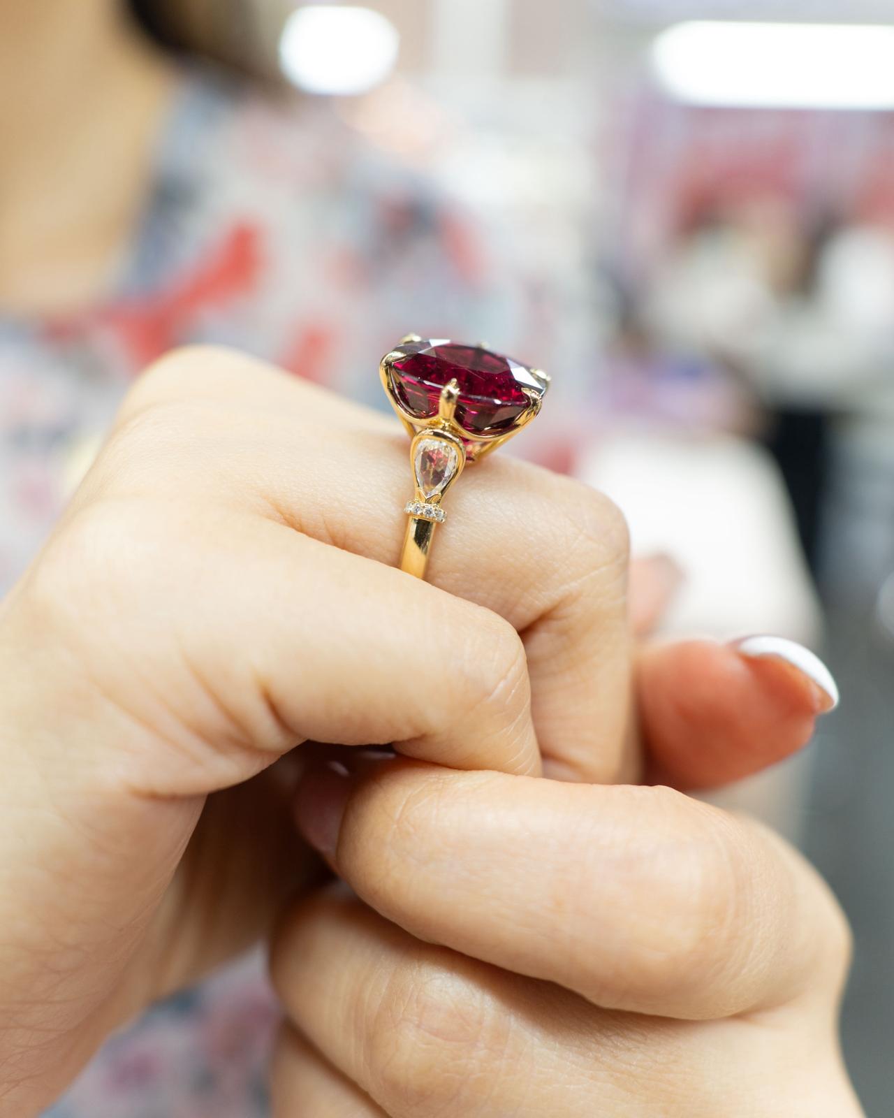15.67-Carat Rubellite & Diamond Ring in 18K Yellow Gold – AIGS Certified