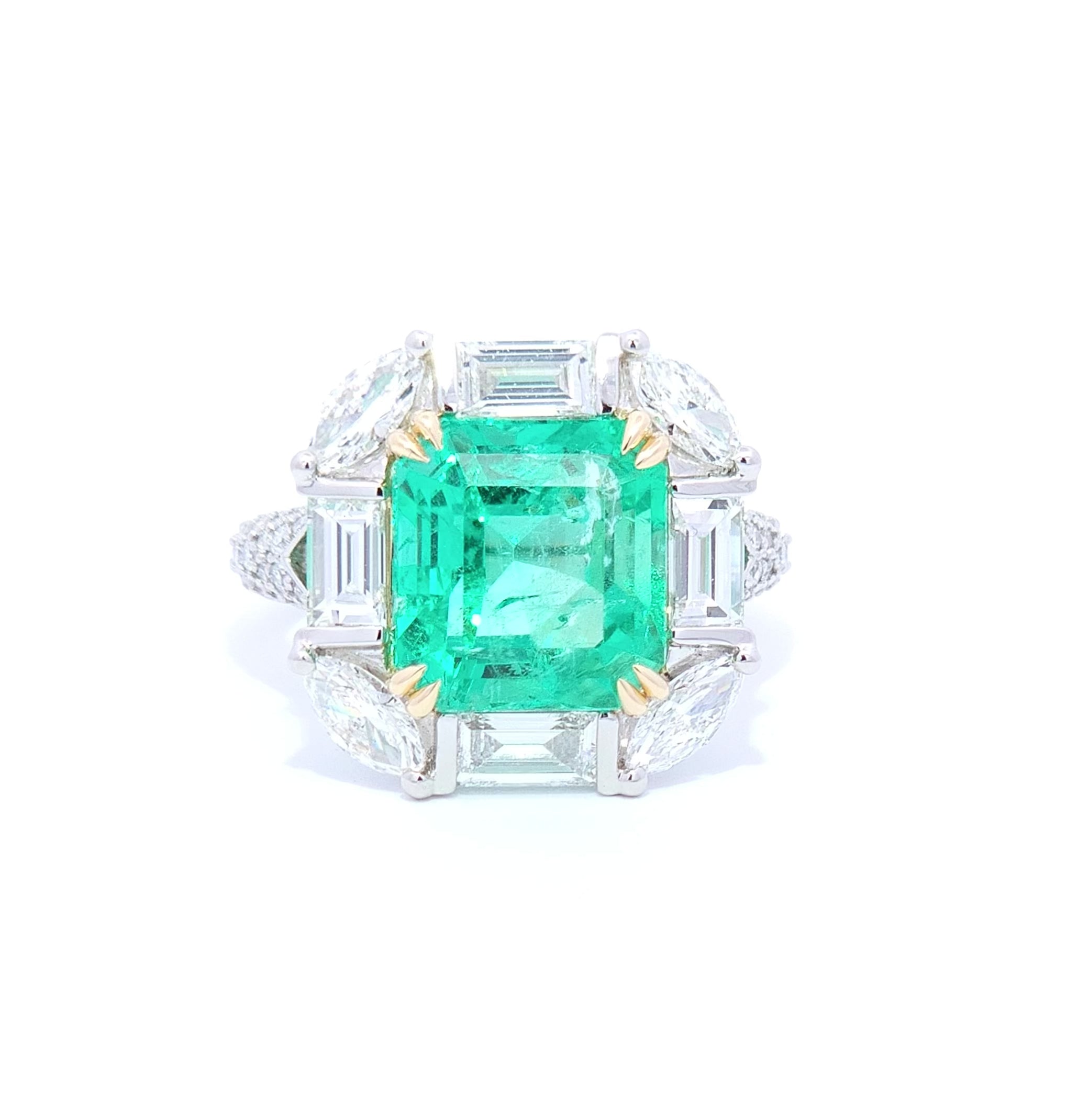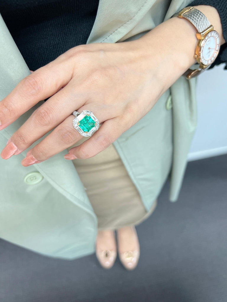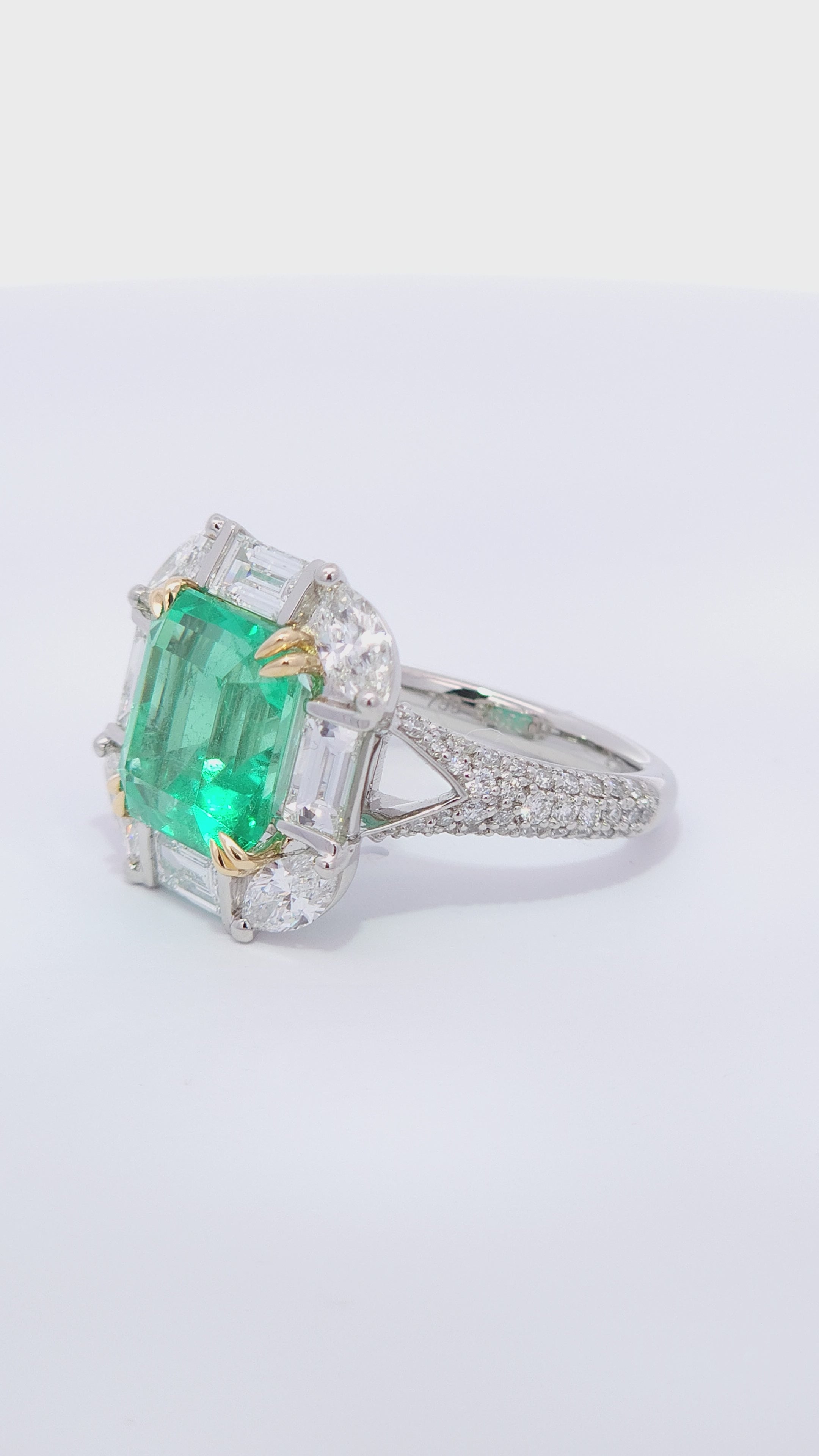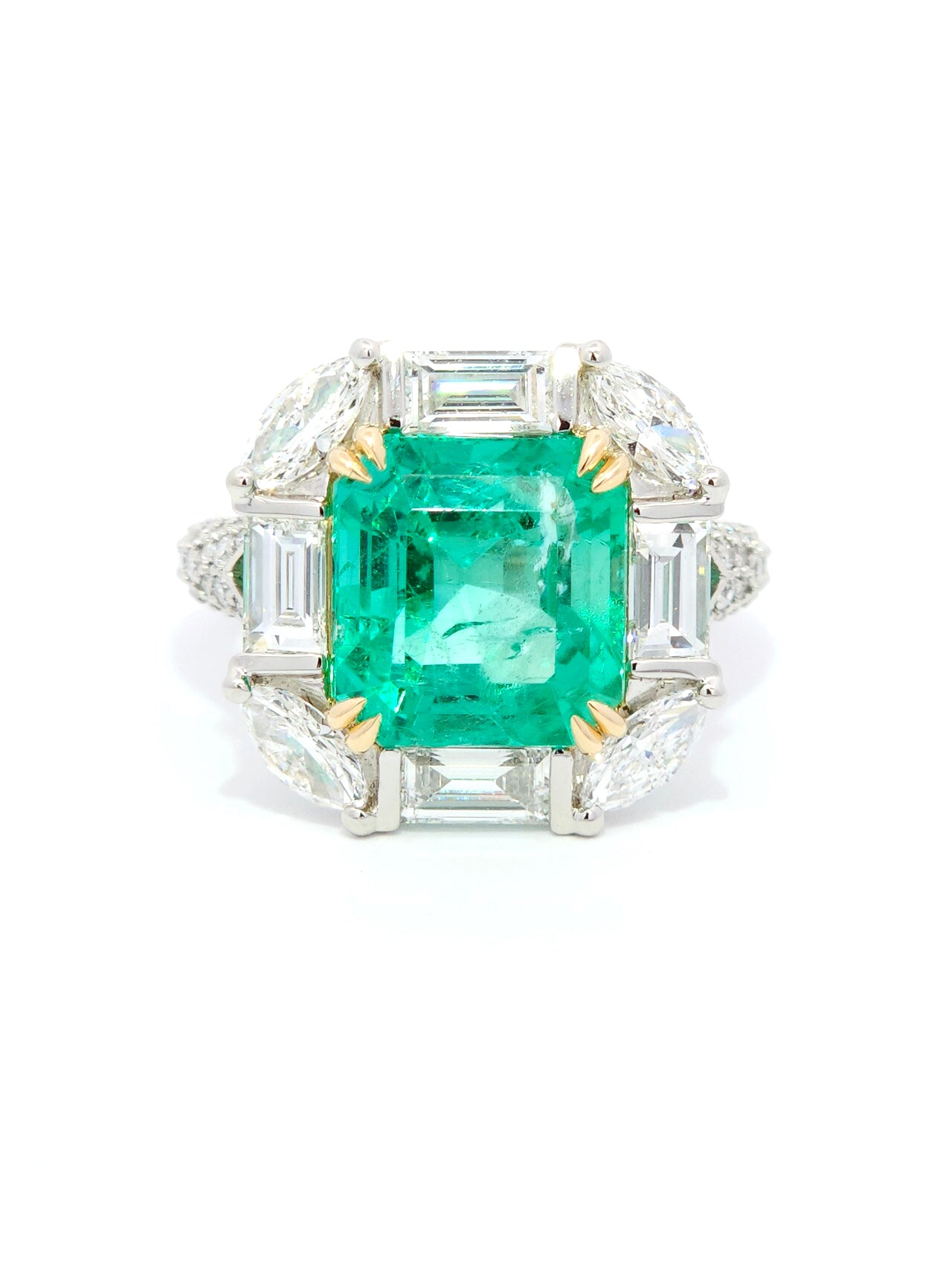4.72ct Colombian Emerald Diamond Ring 18K White & Yellow Gold GRS - SOLD