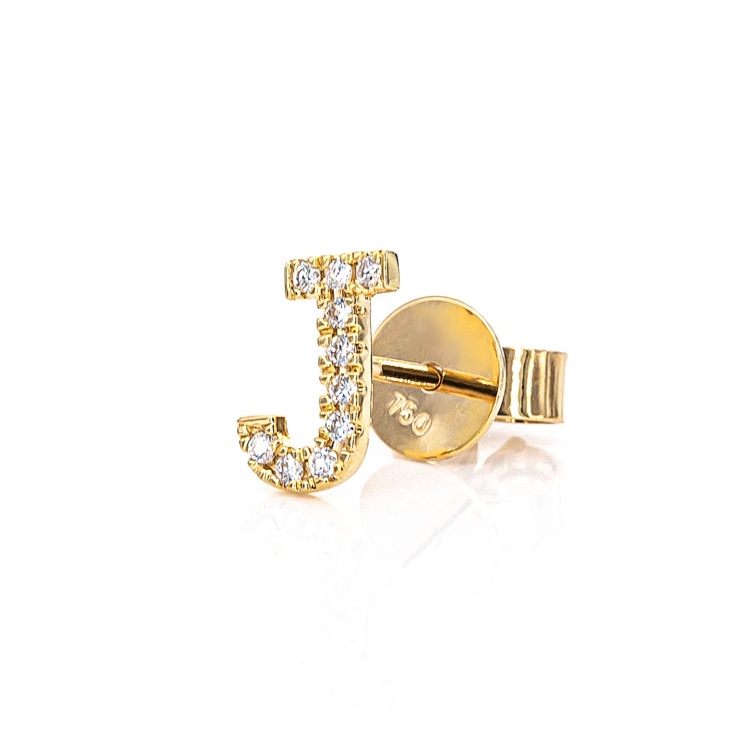 Initial Diamond "J" Single Earring Stud 18K Yellow Gold
