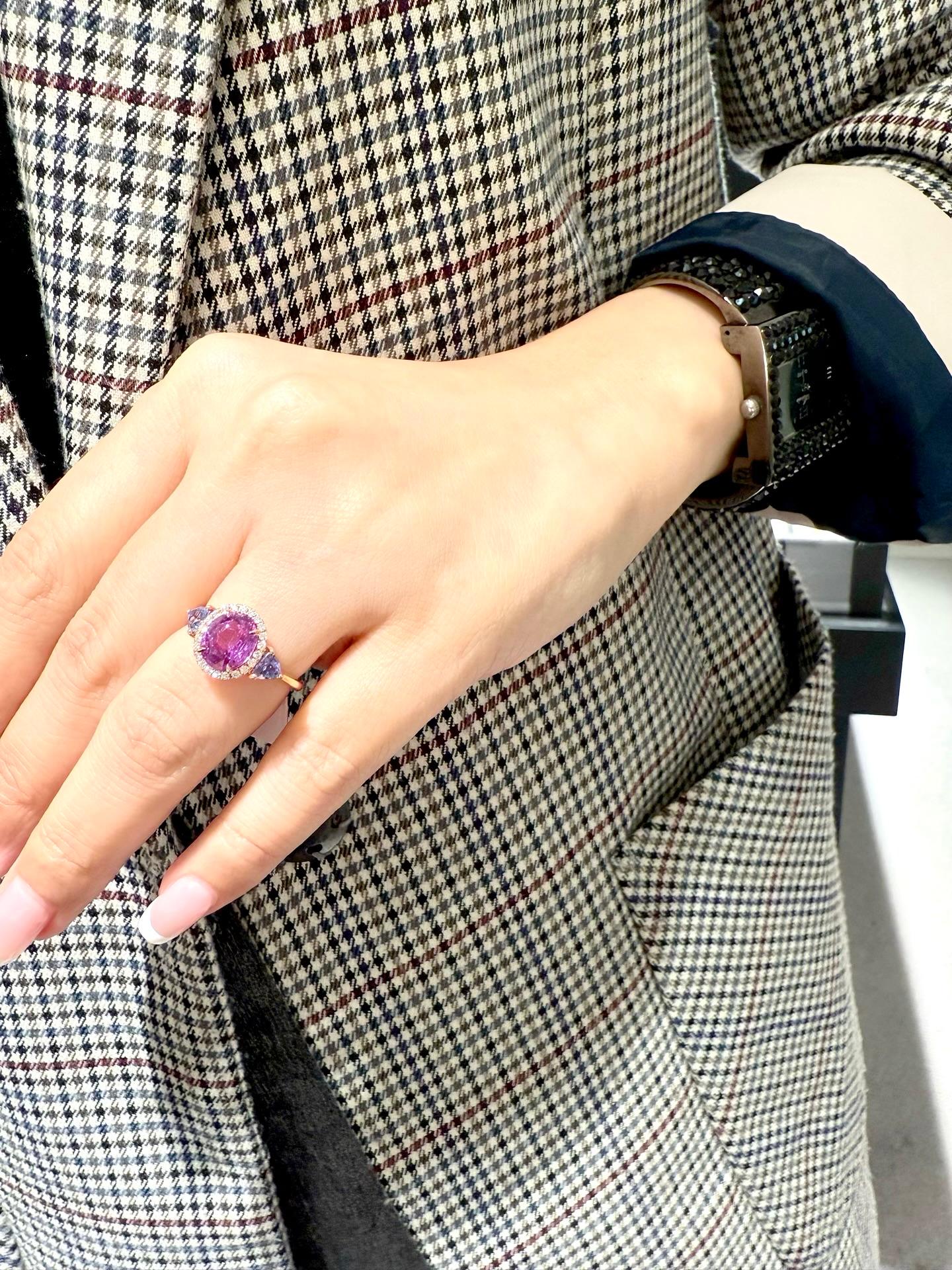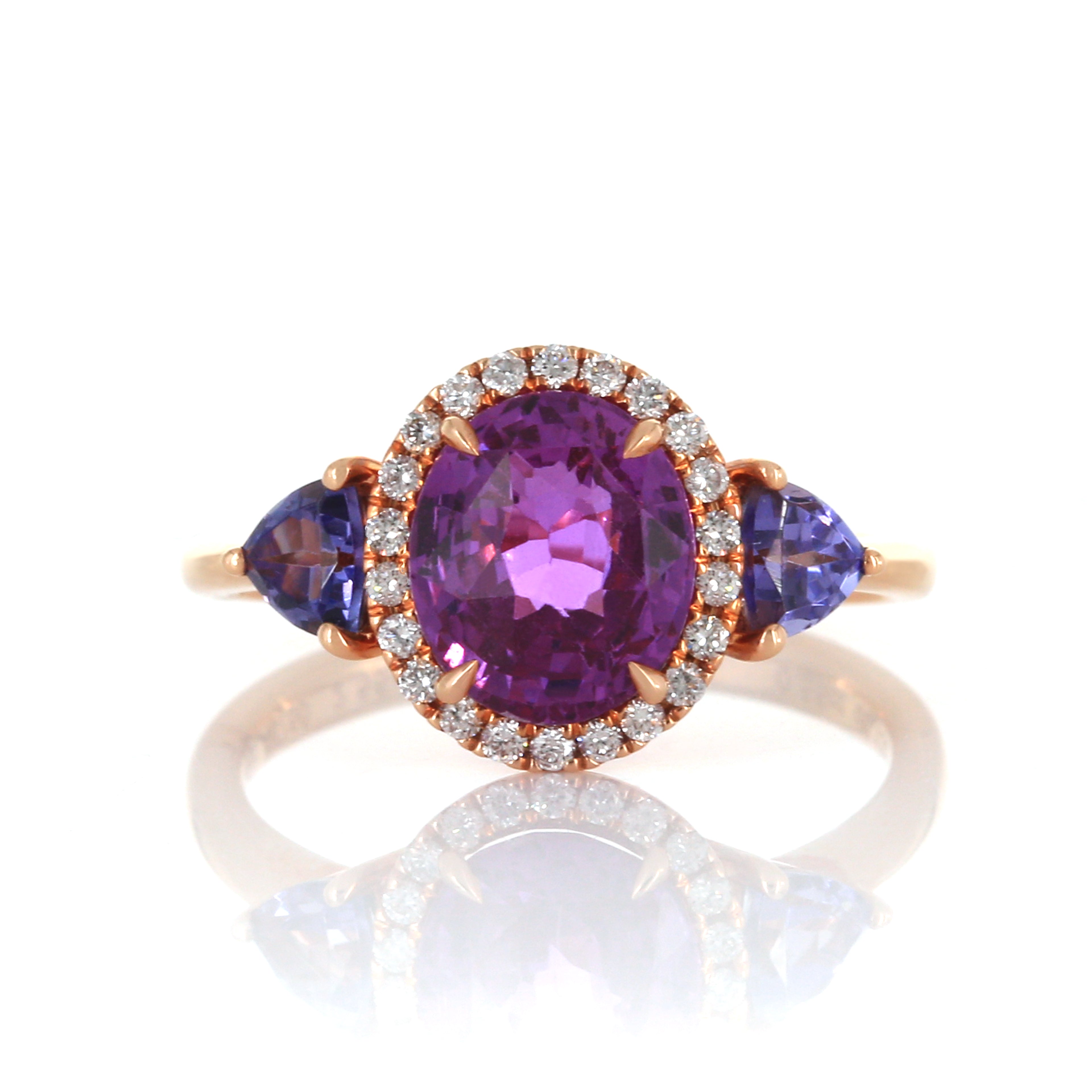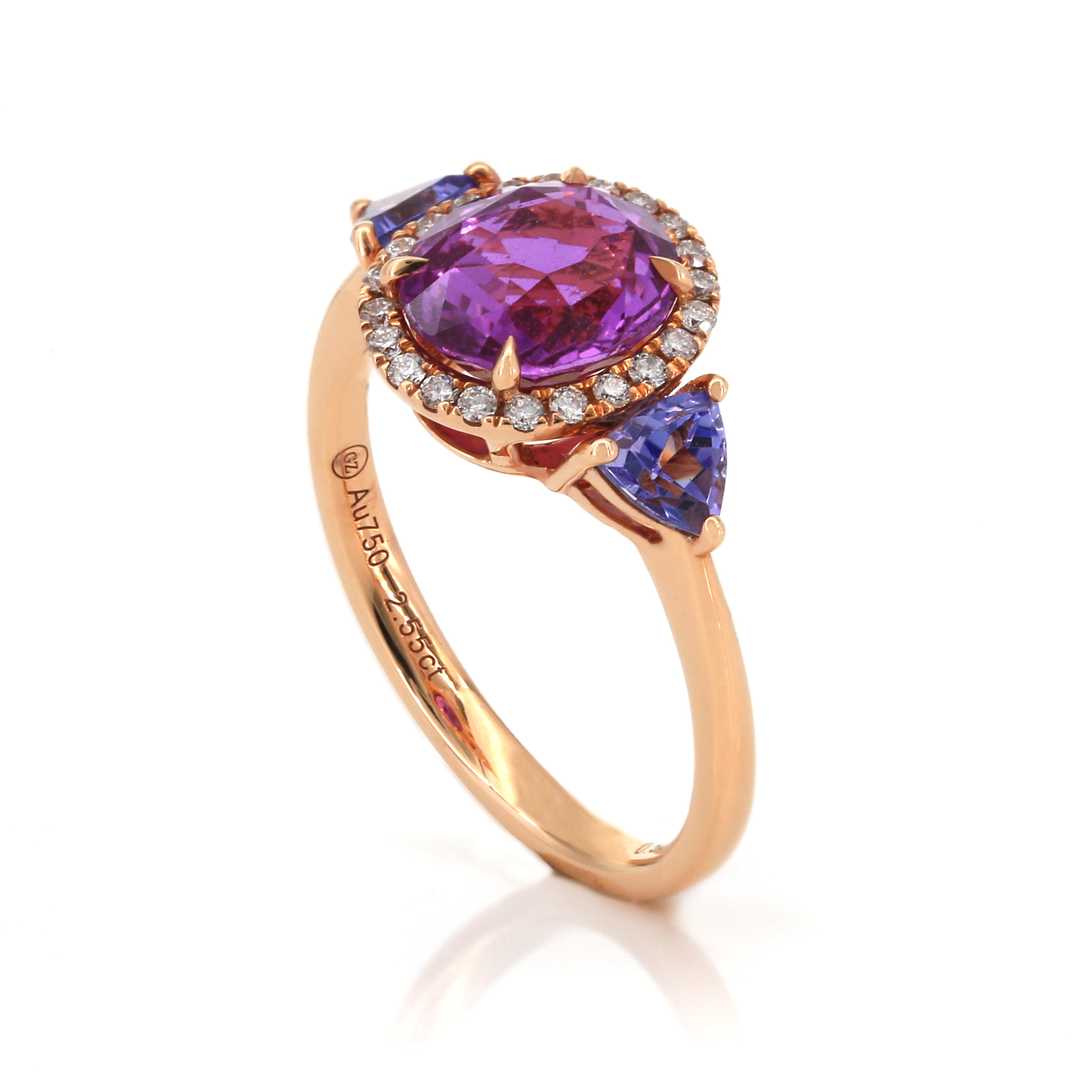 2.55ct Madagascar Oval Purplish-Pink Sapphire & Tanzanite Diamond Ring 18K Rose Gold GRS