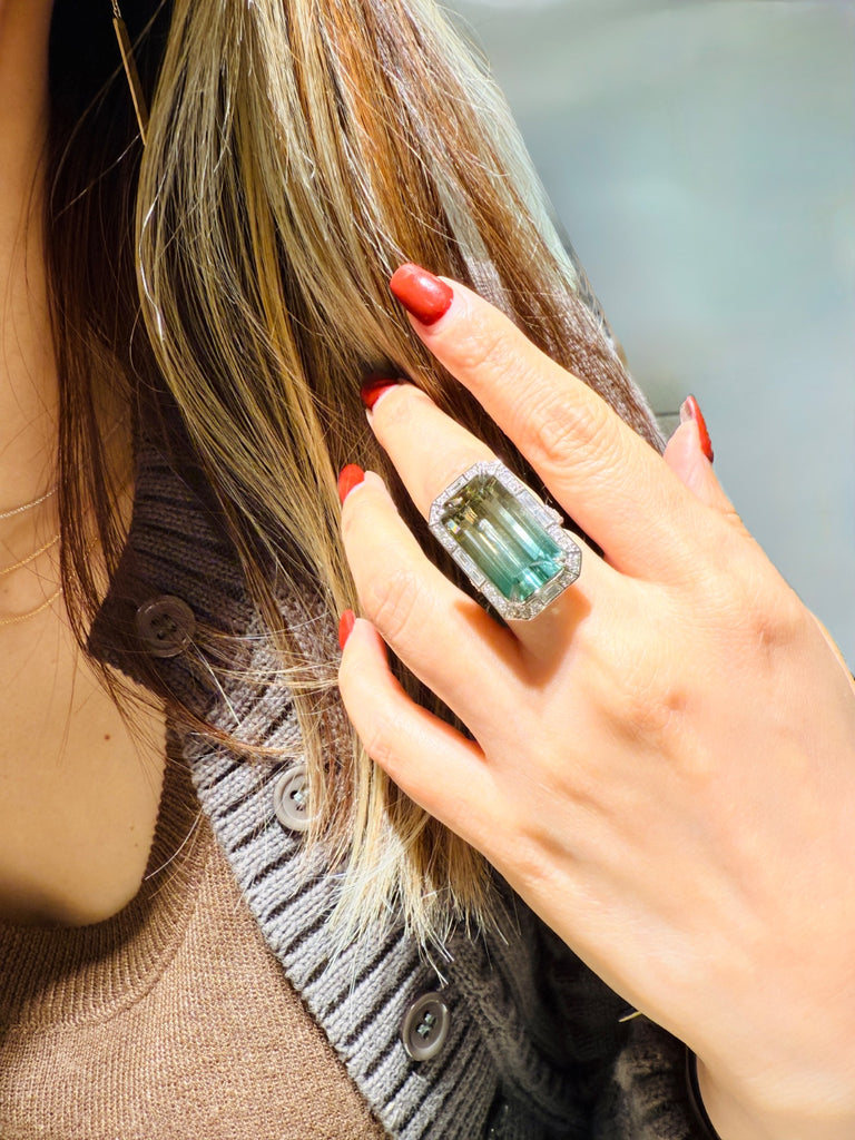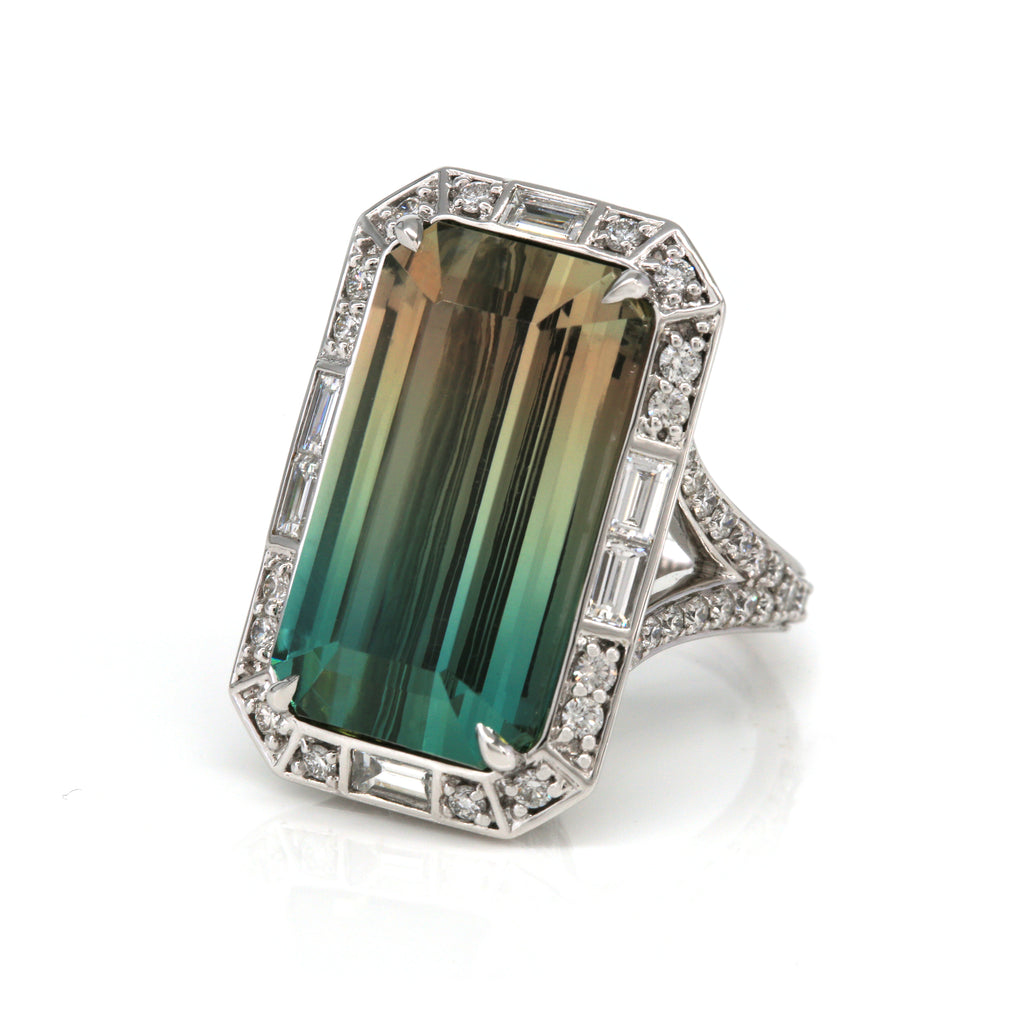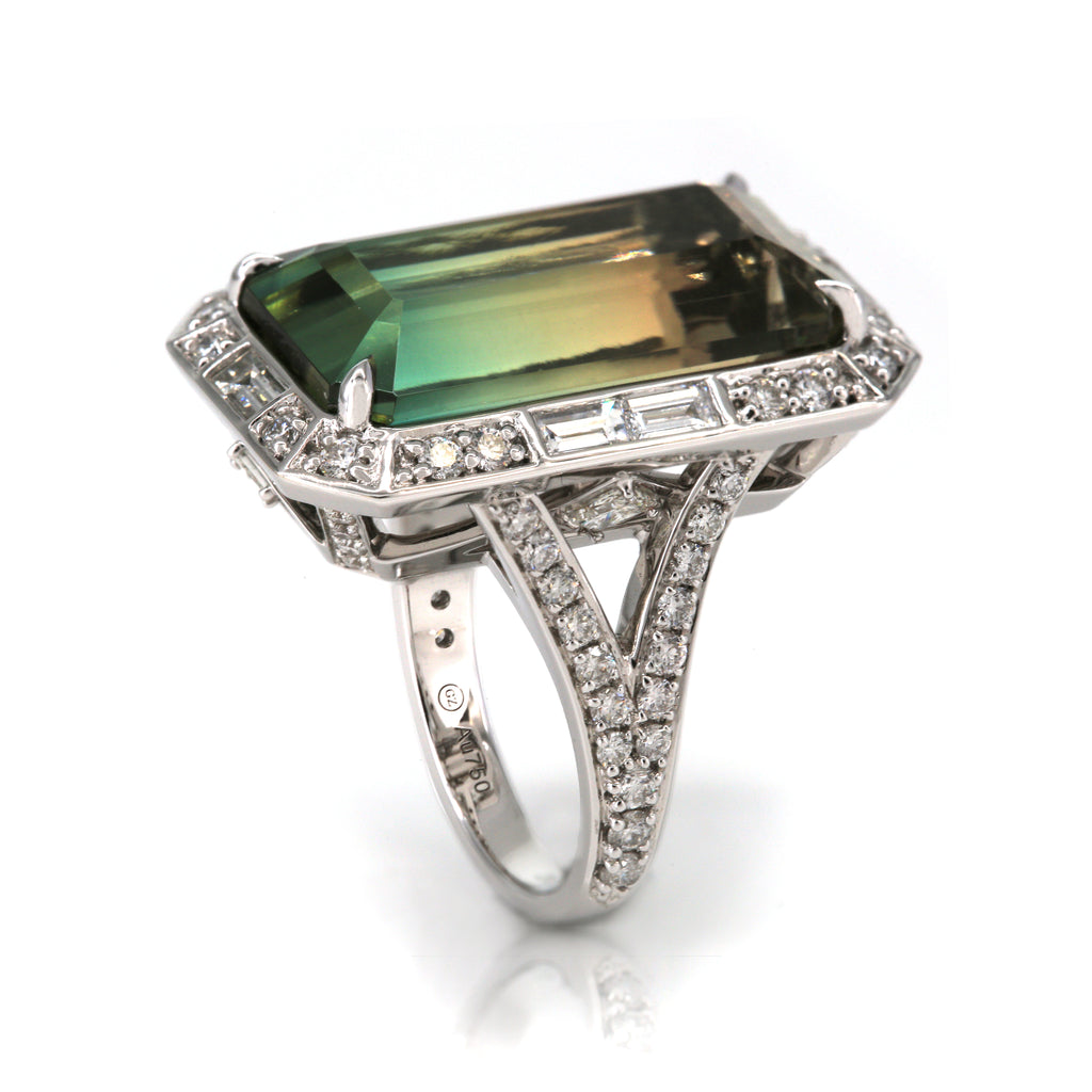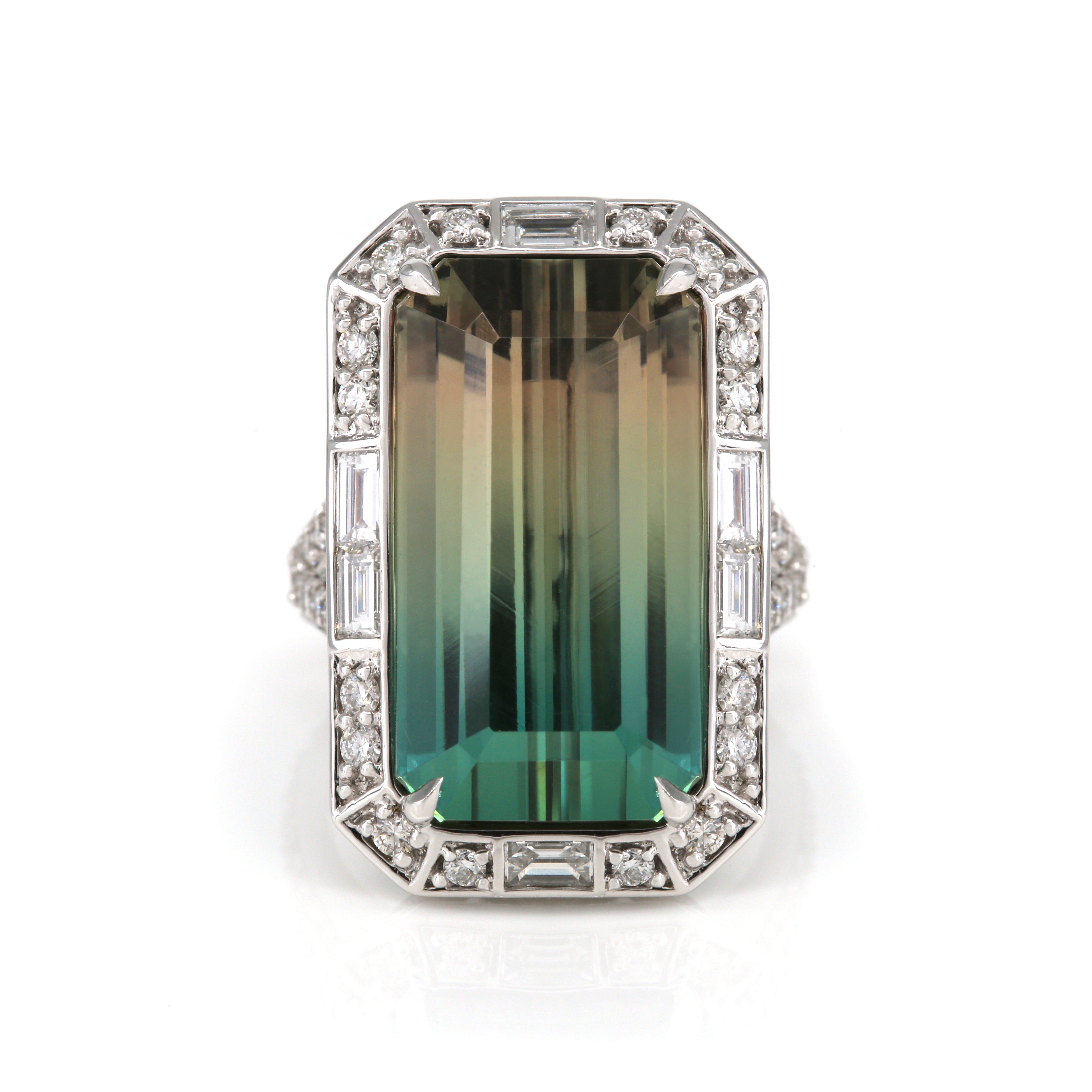 18.62ct Bi-Colour Tourmaline Diamond Ring 18K White Gold - Guild