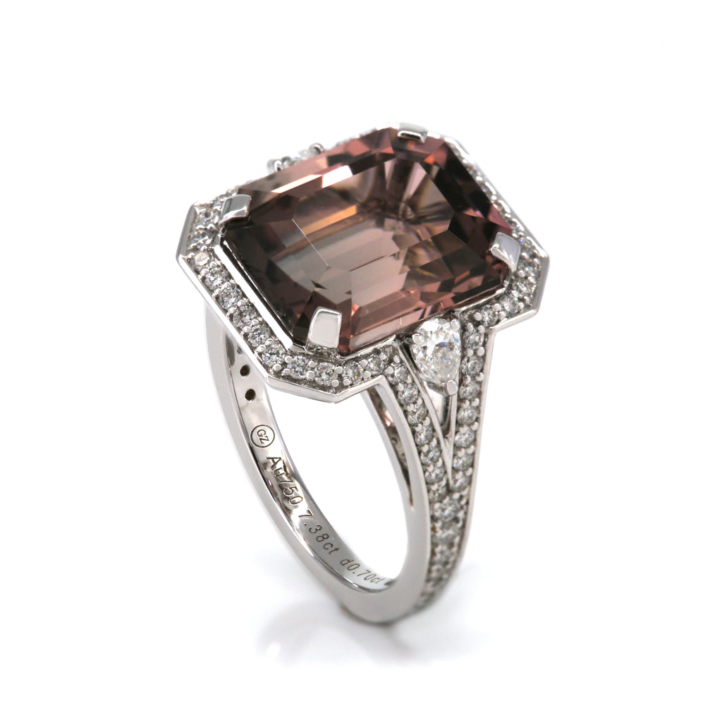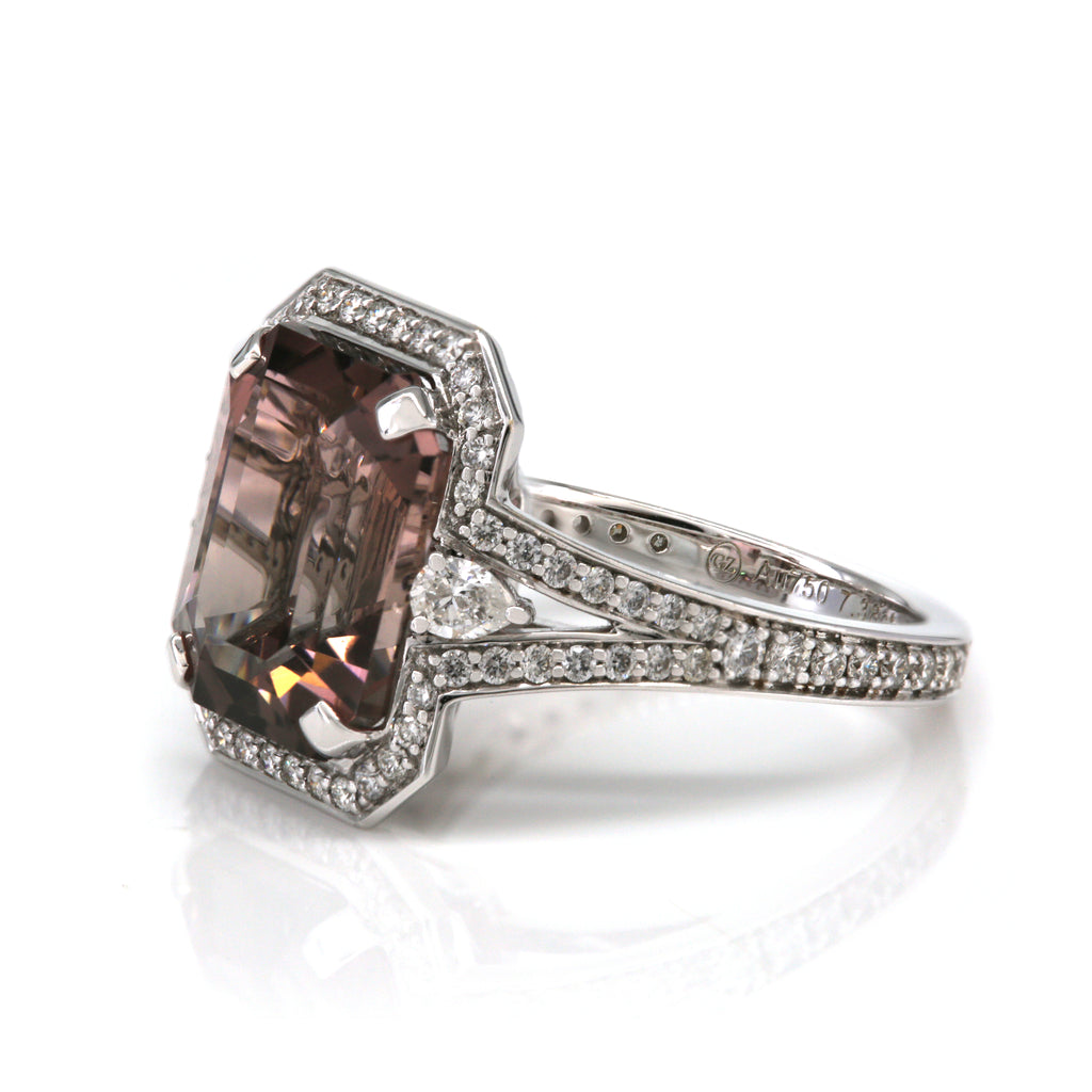 7.39ct Natural Pink Tourmaline Diamond Ring AGR