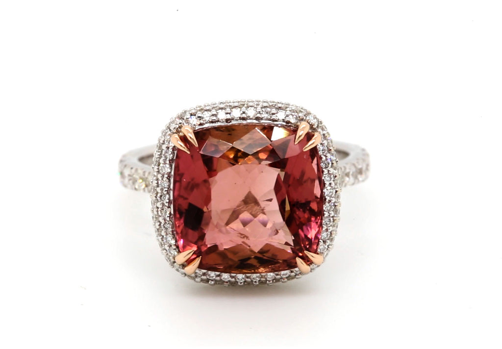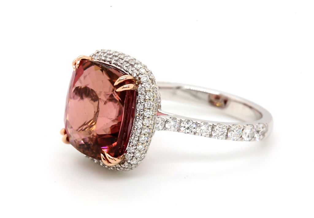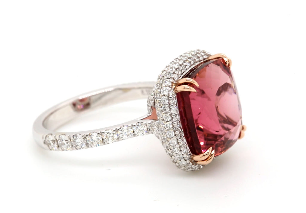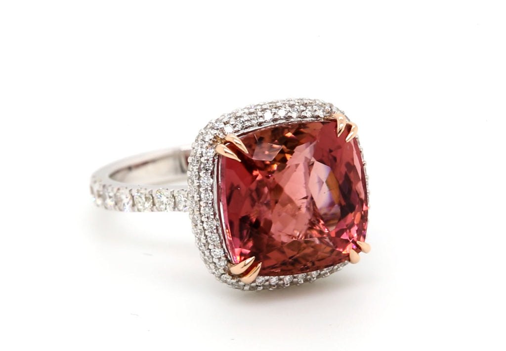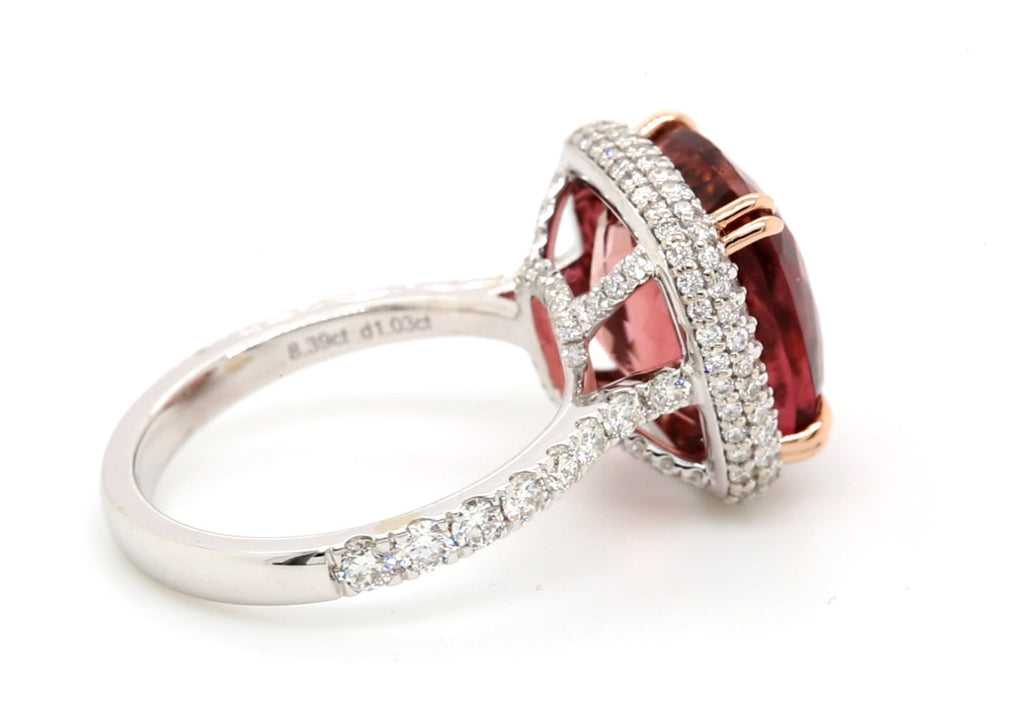 Pink Tourmaline Diamond Ring in 18K Gold - SOLD