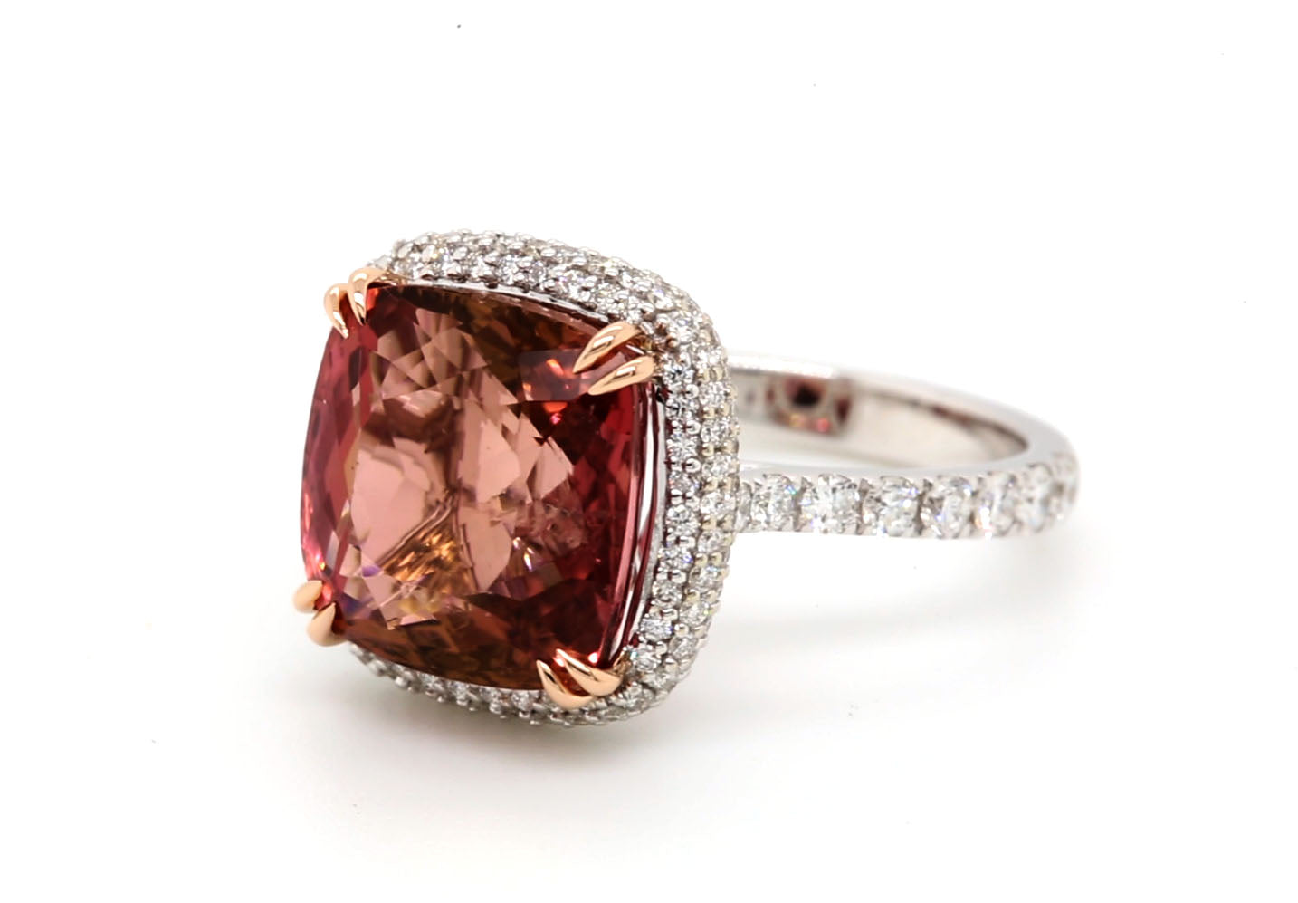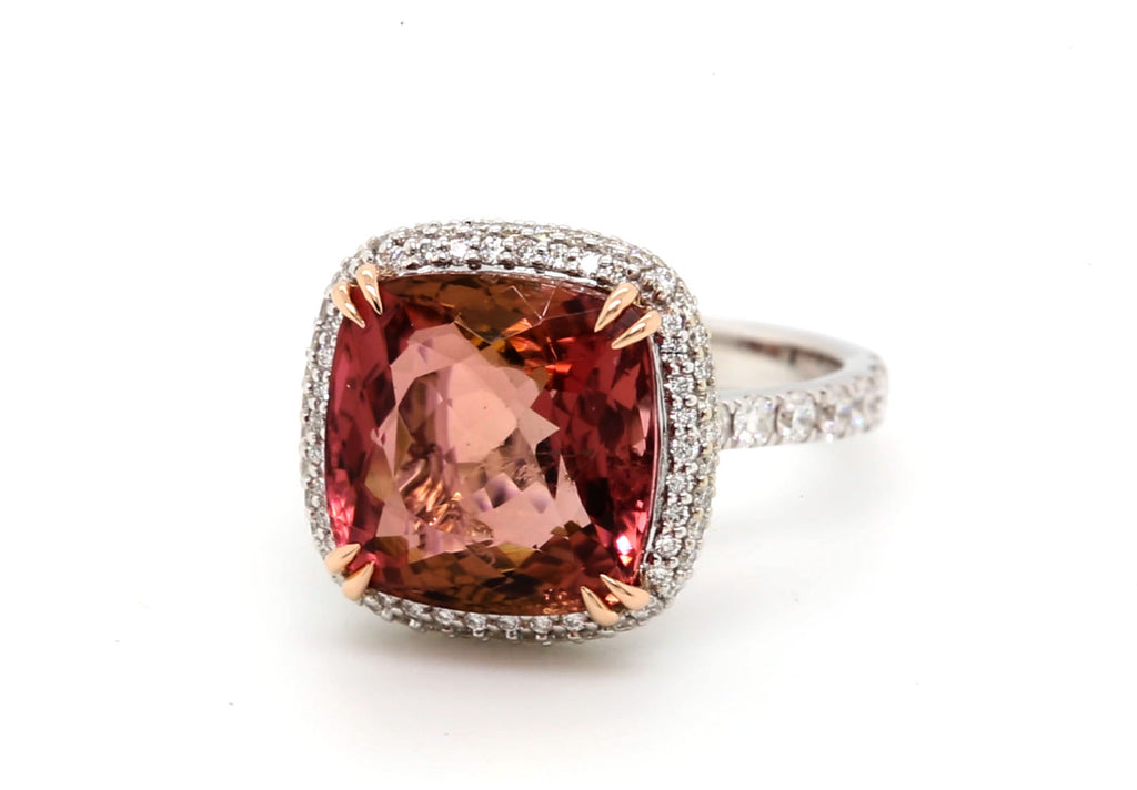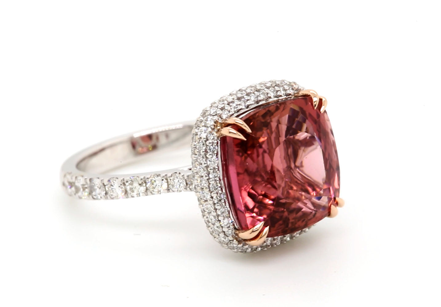 Pink Tourmaline Diamond Ring in 18K Gold - SOLD