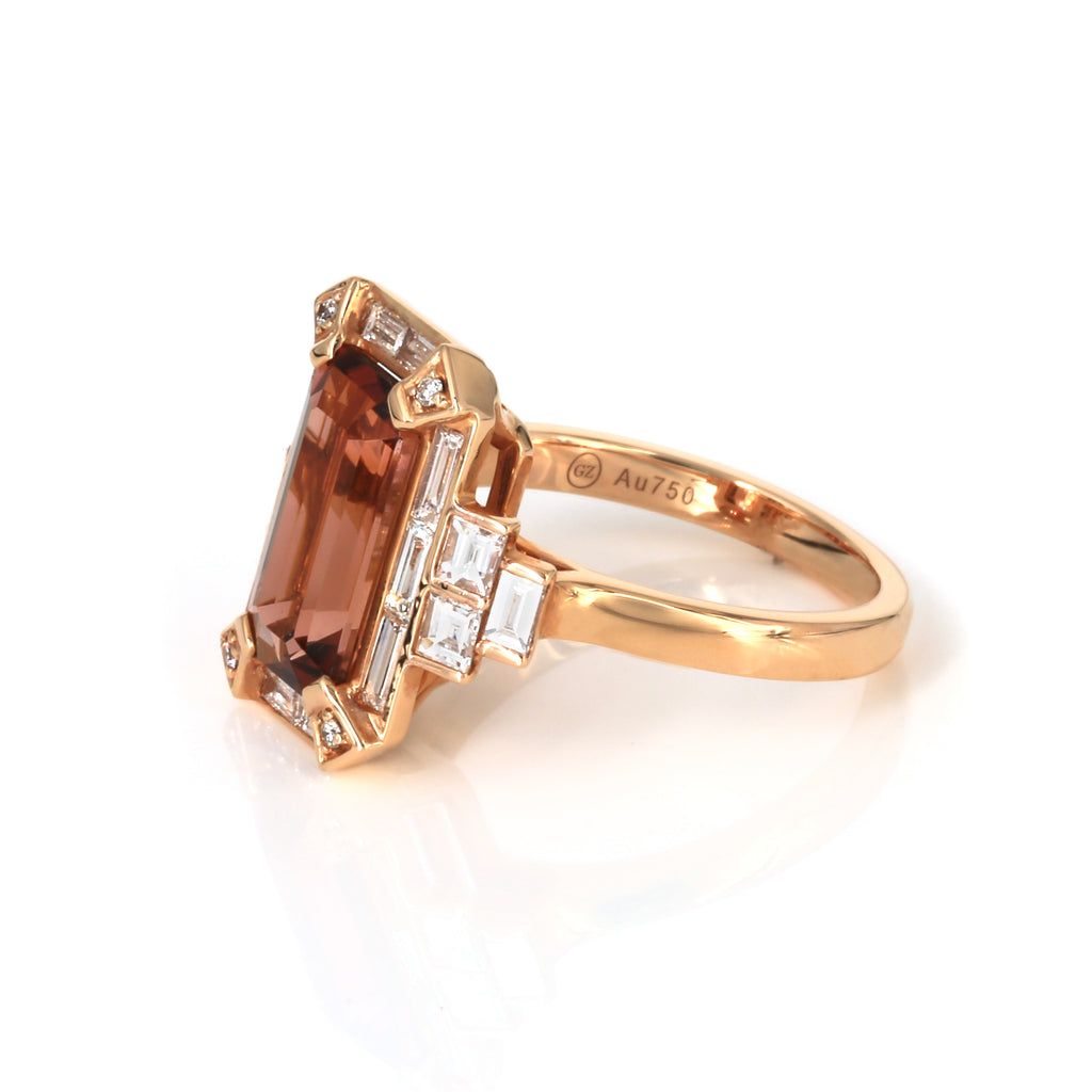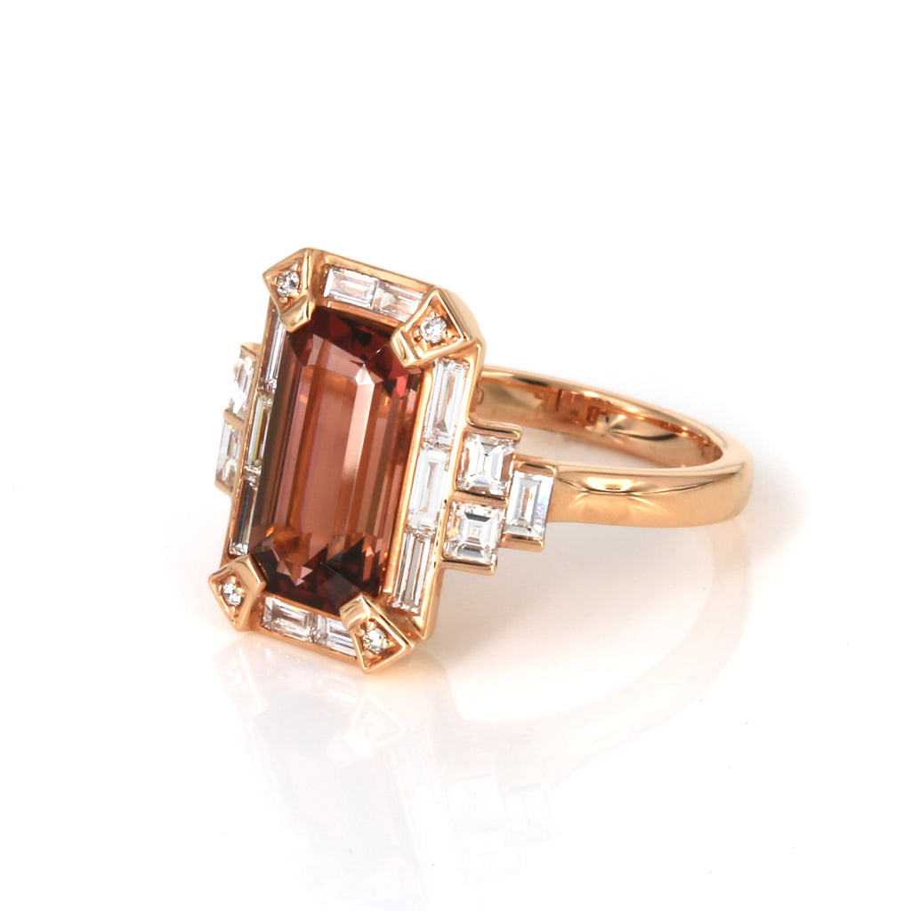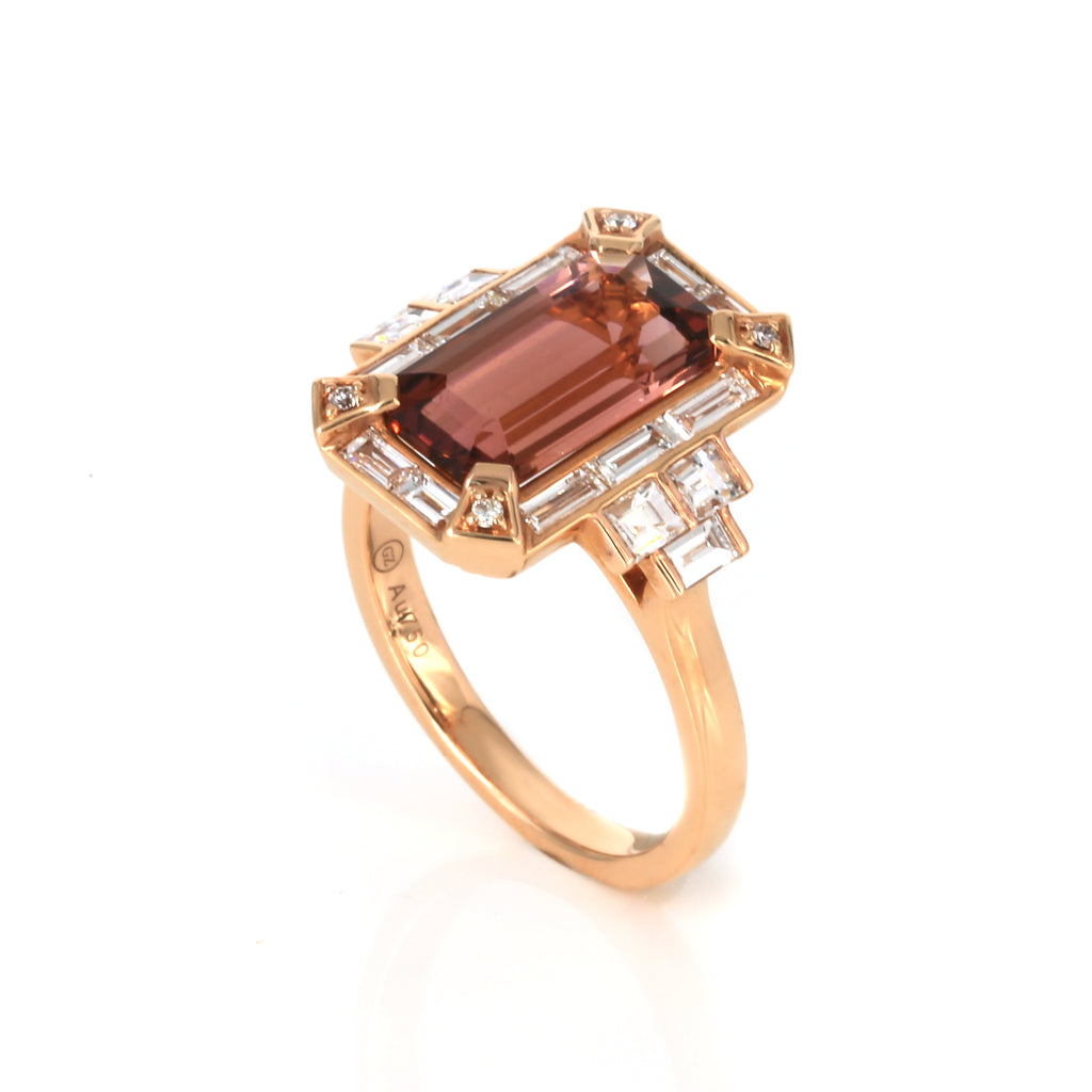 3.08ct AGR Africa Natural Tourmaline Diamond Ring in 18K Rose Gold