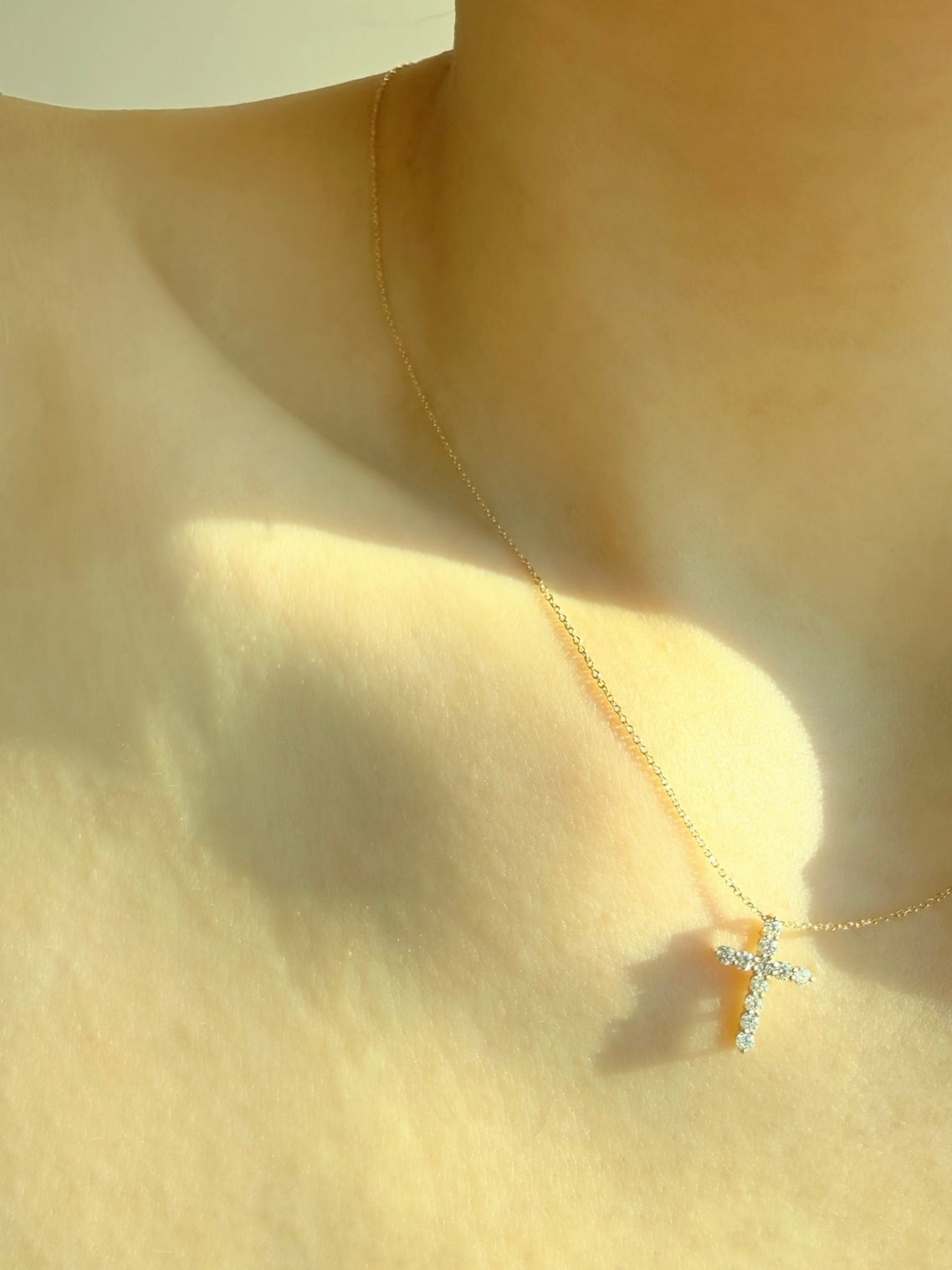 0.28ct Cross Diamond Pendant with Chain 18K Yellow Gold - 11666