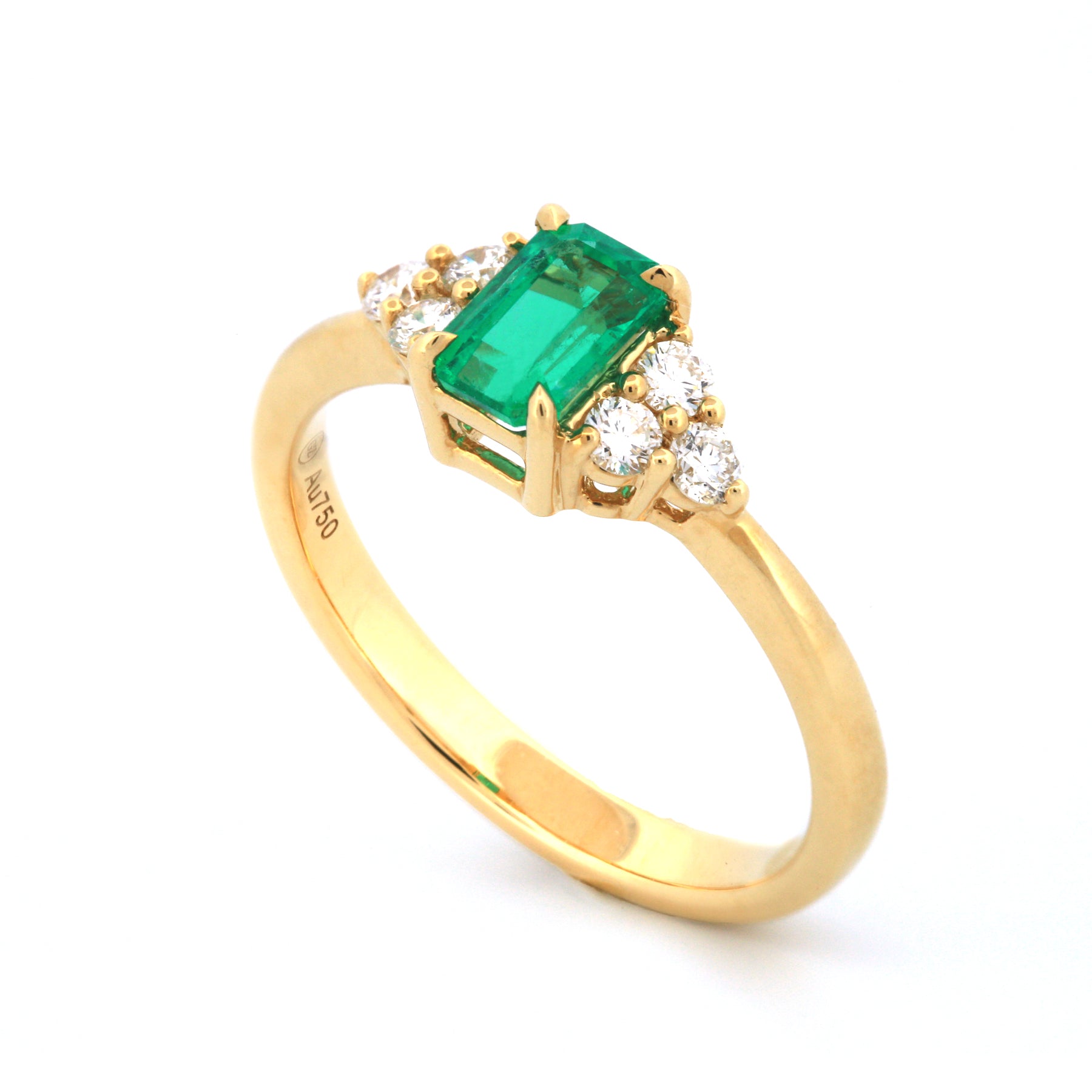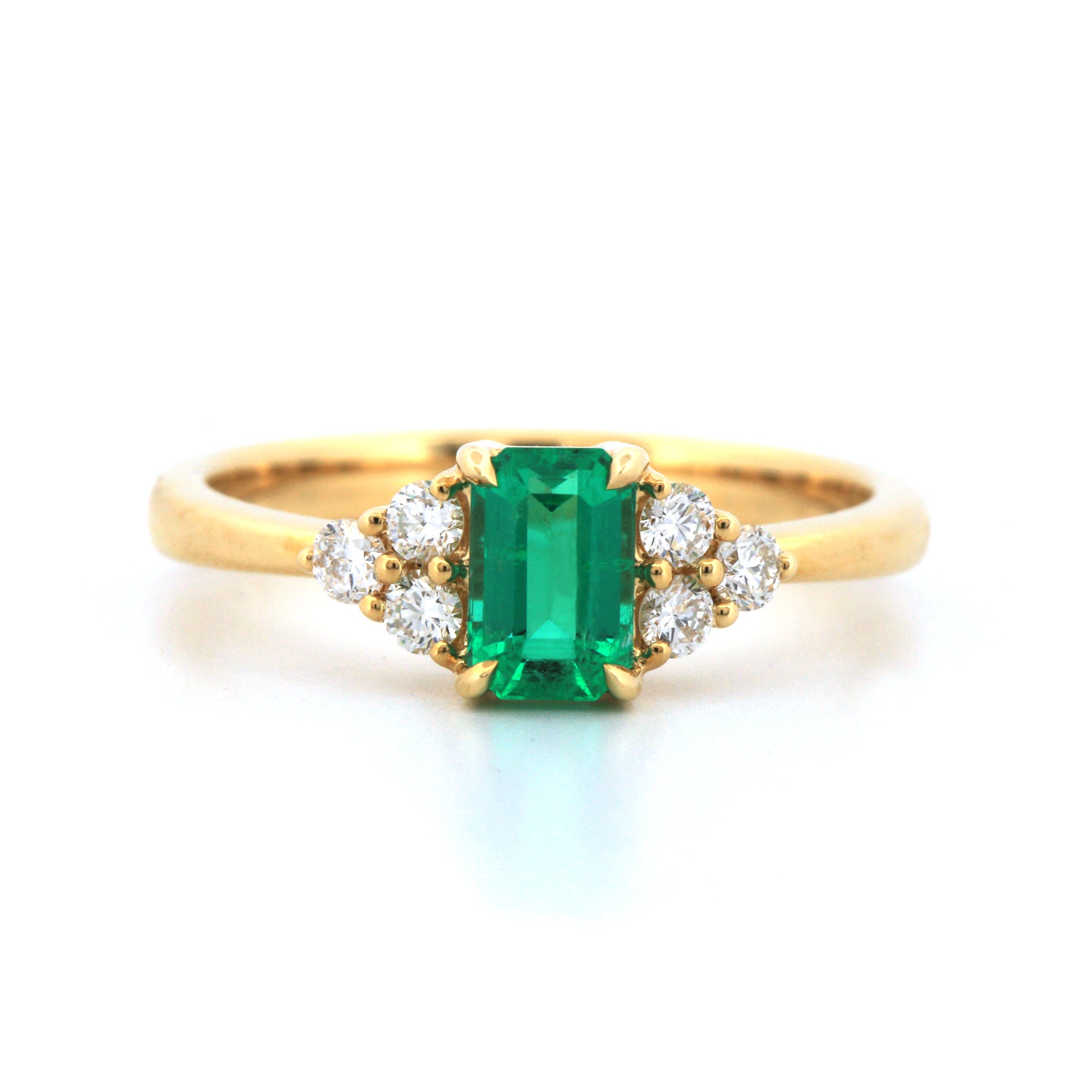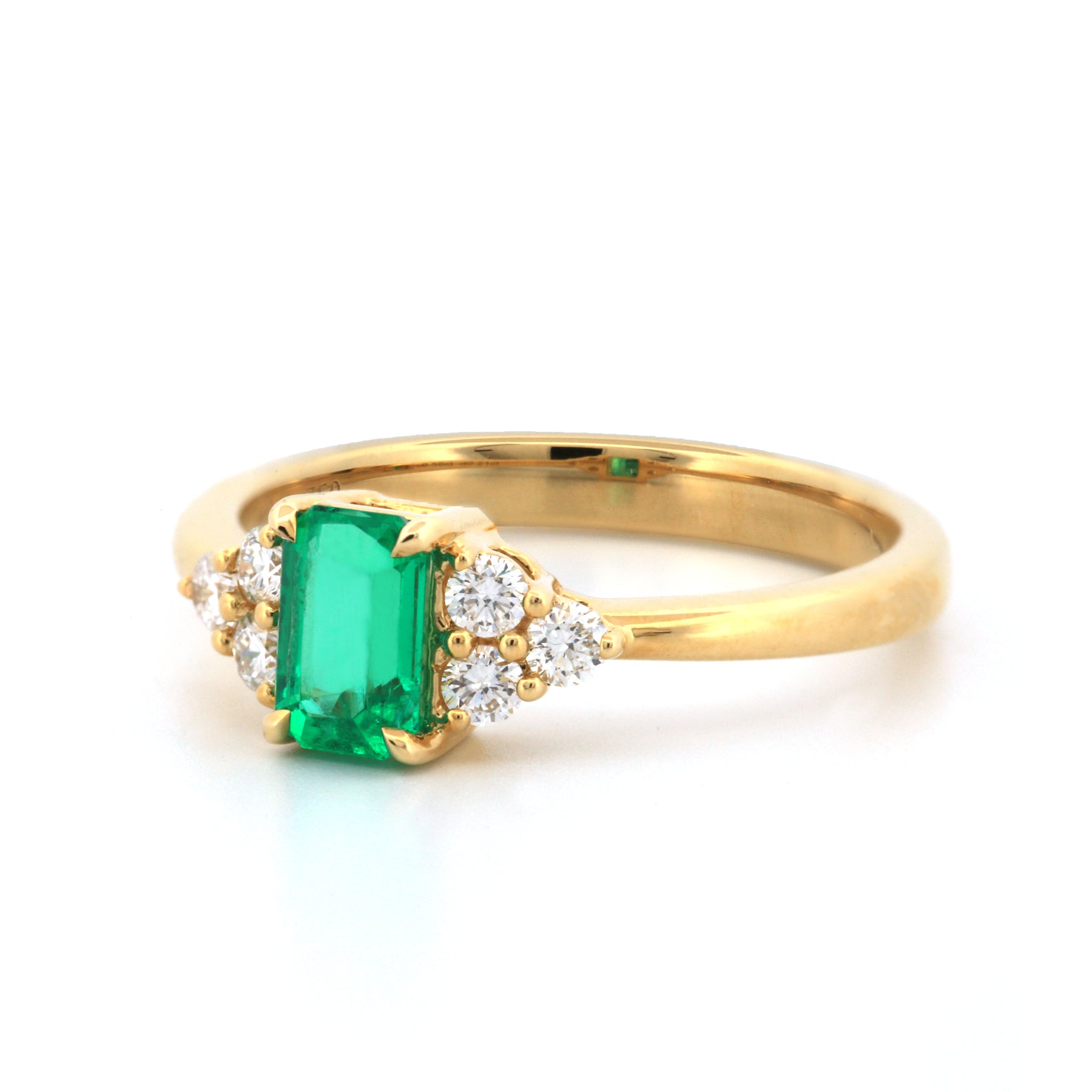 0.56ct Emerald Diamond Ring 18K Yellow Gold
