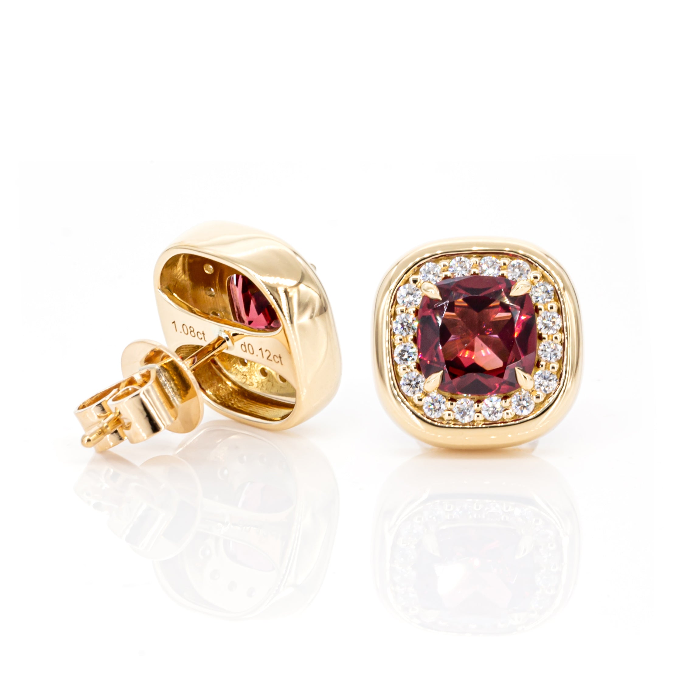 2.04ct Garnet Diamond Halo Stud Earrings 18K Yellow Gold