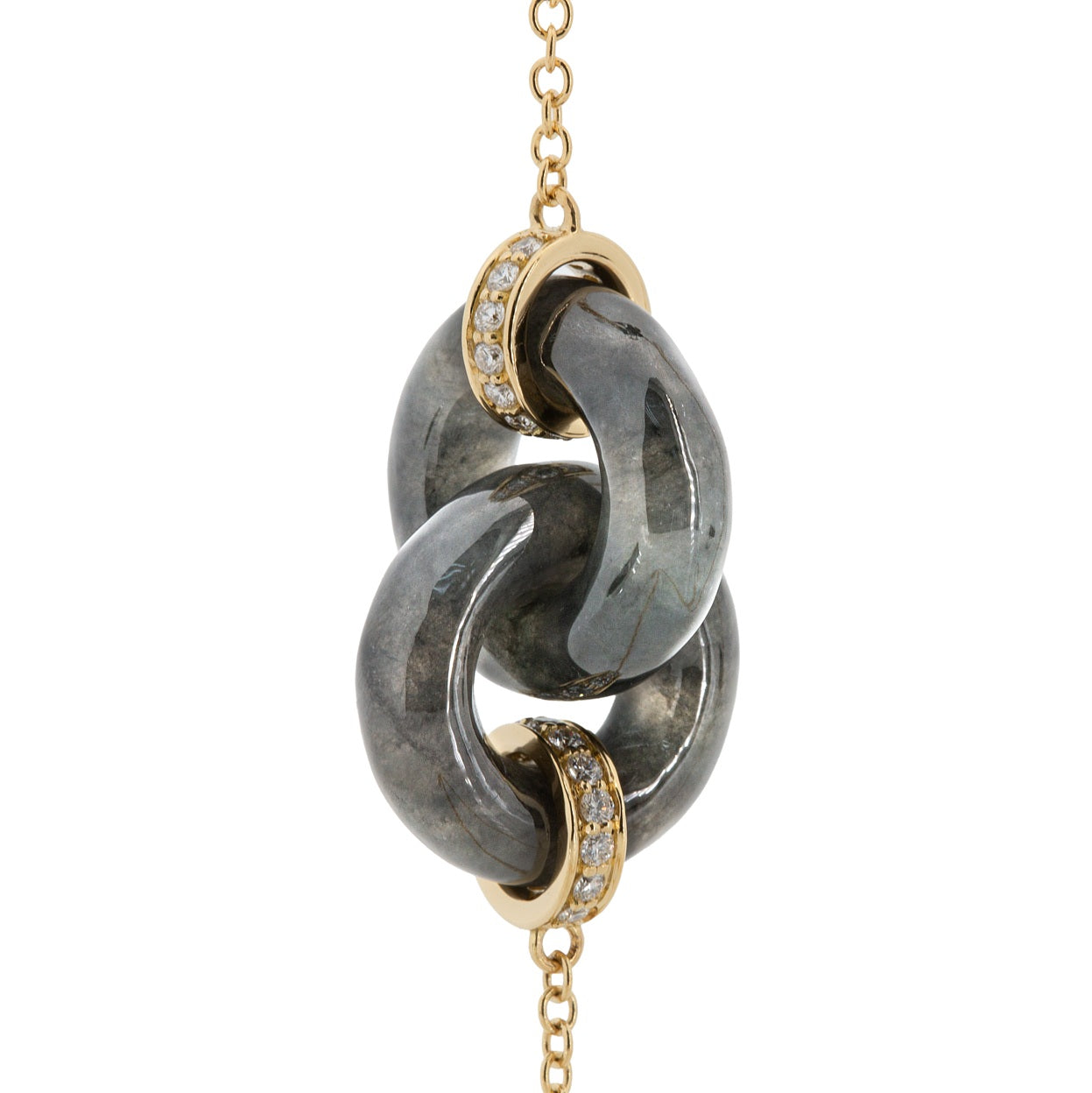 3.47g Jadeite Diamond Chain Necklace 18K Yellow Gold