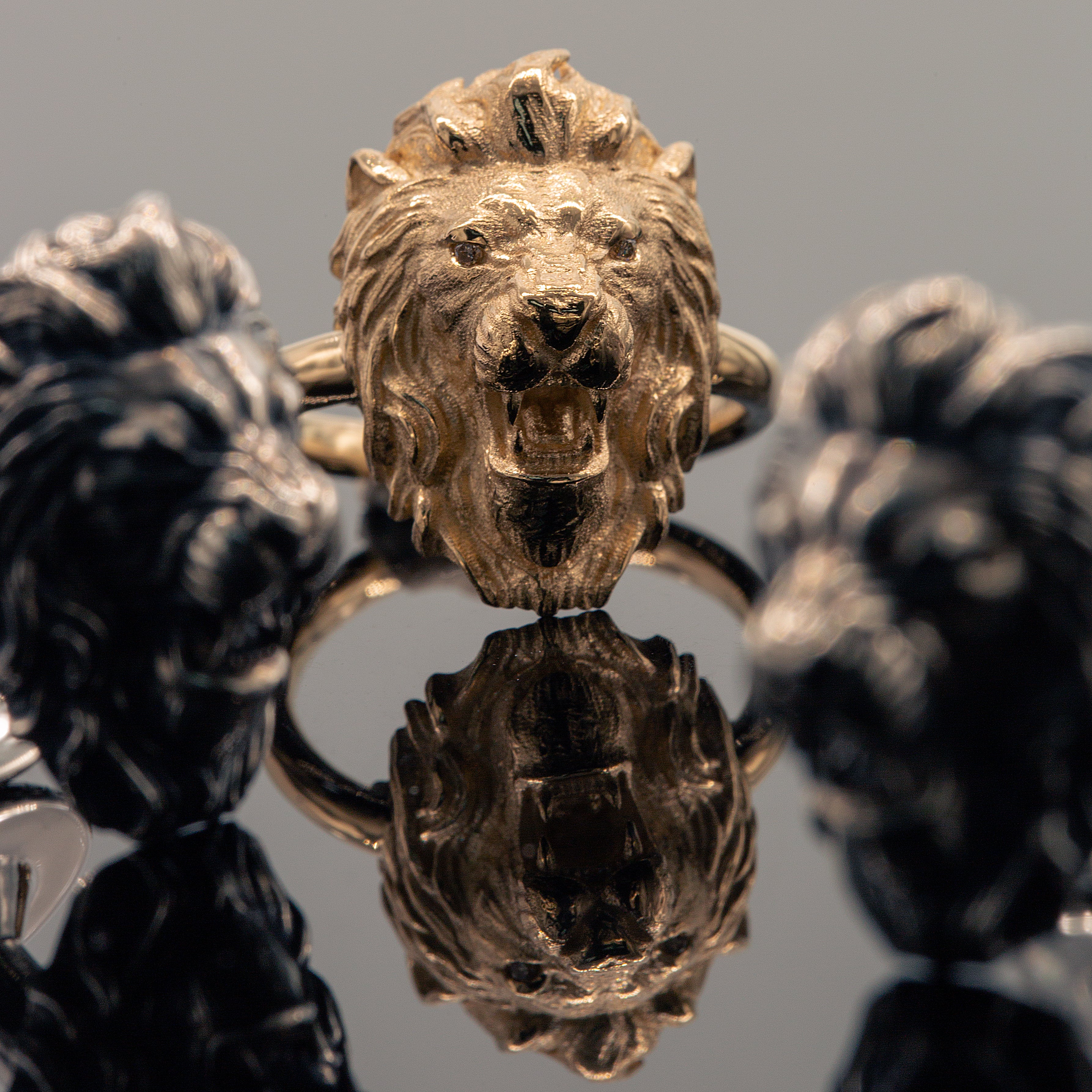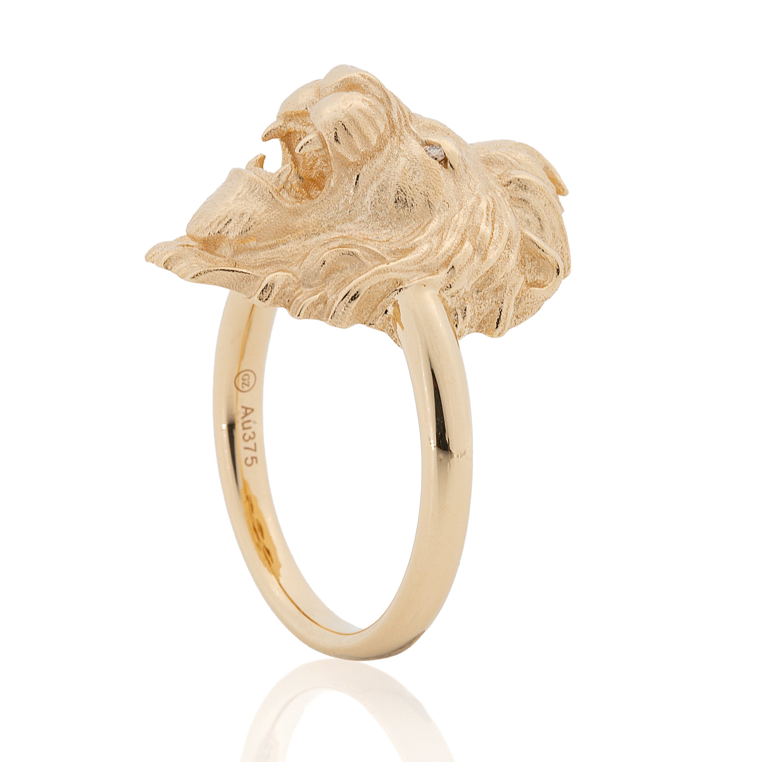 Lion Champagne Diamonds 9K Yellow Gold Ring - SOLD