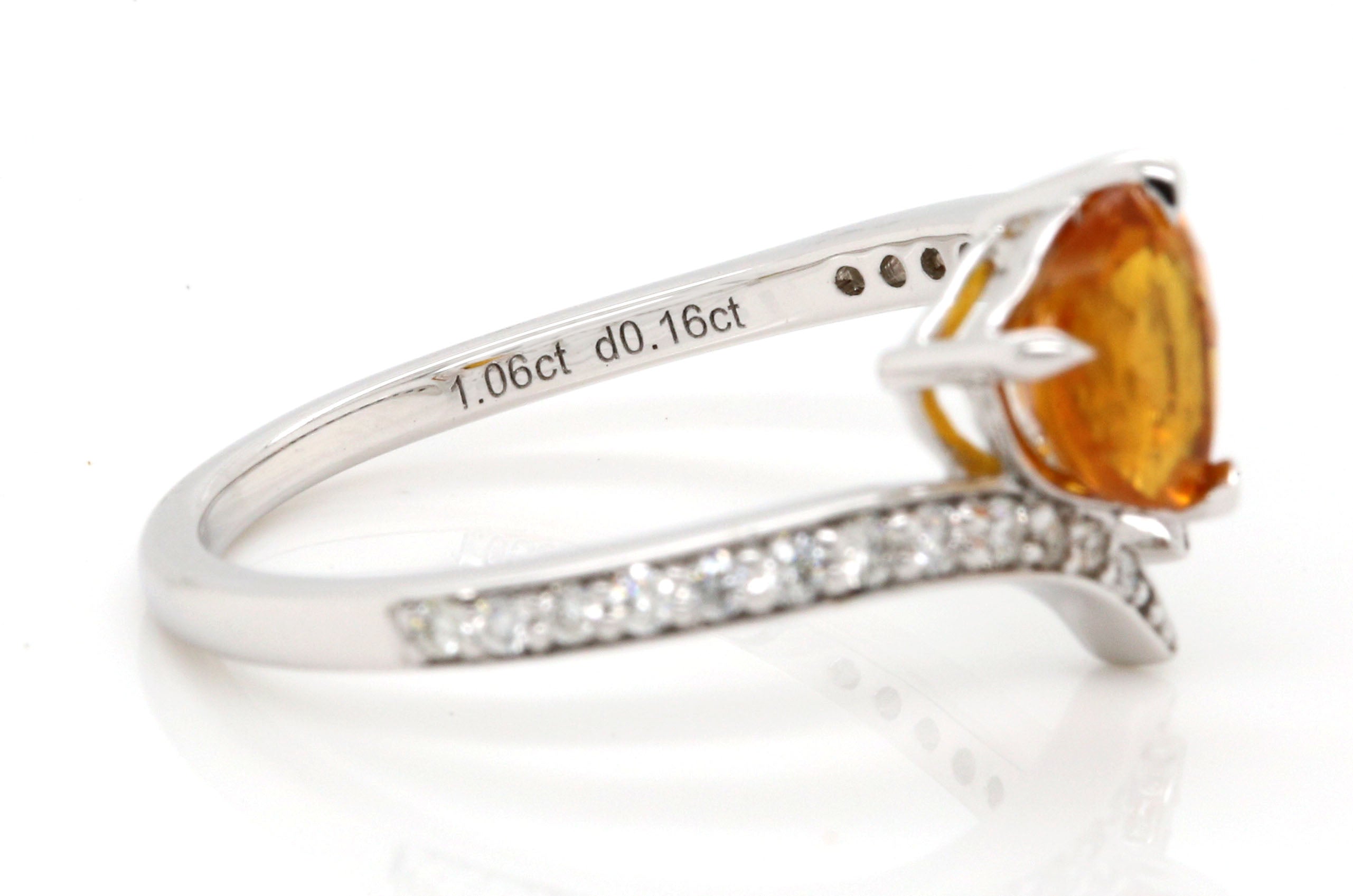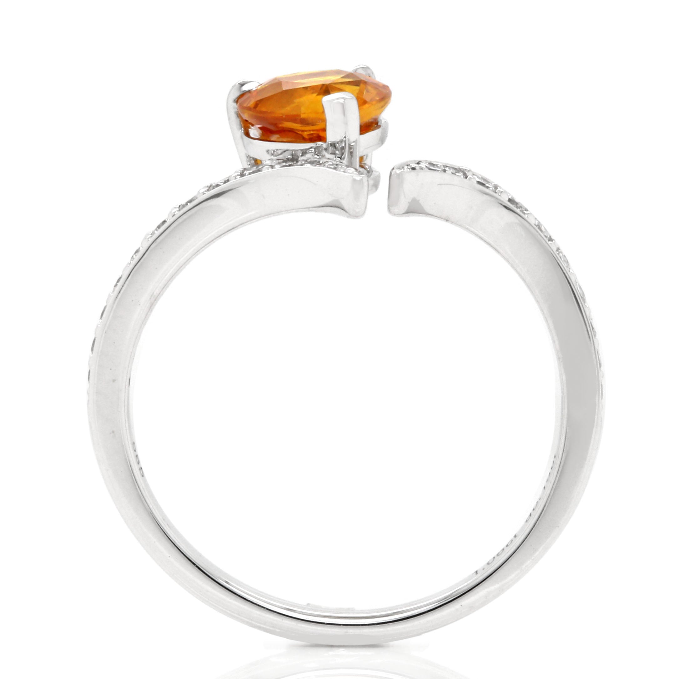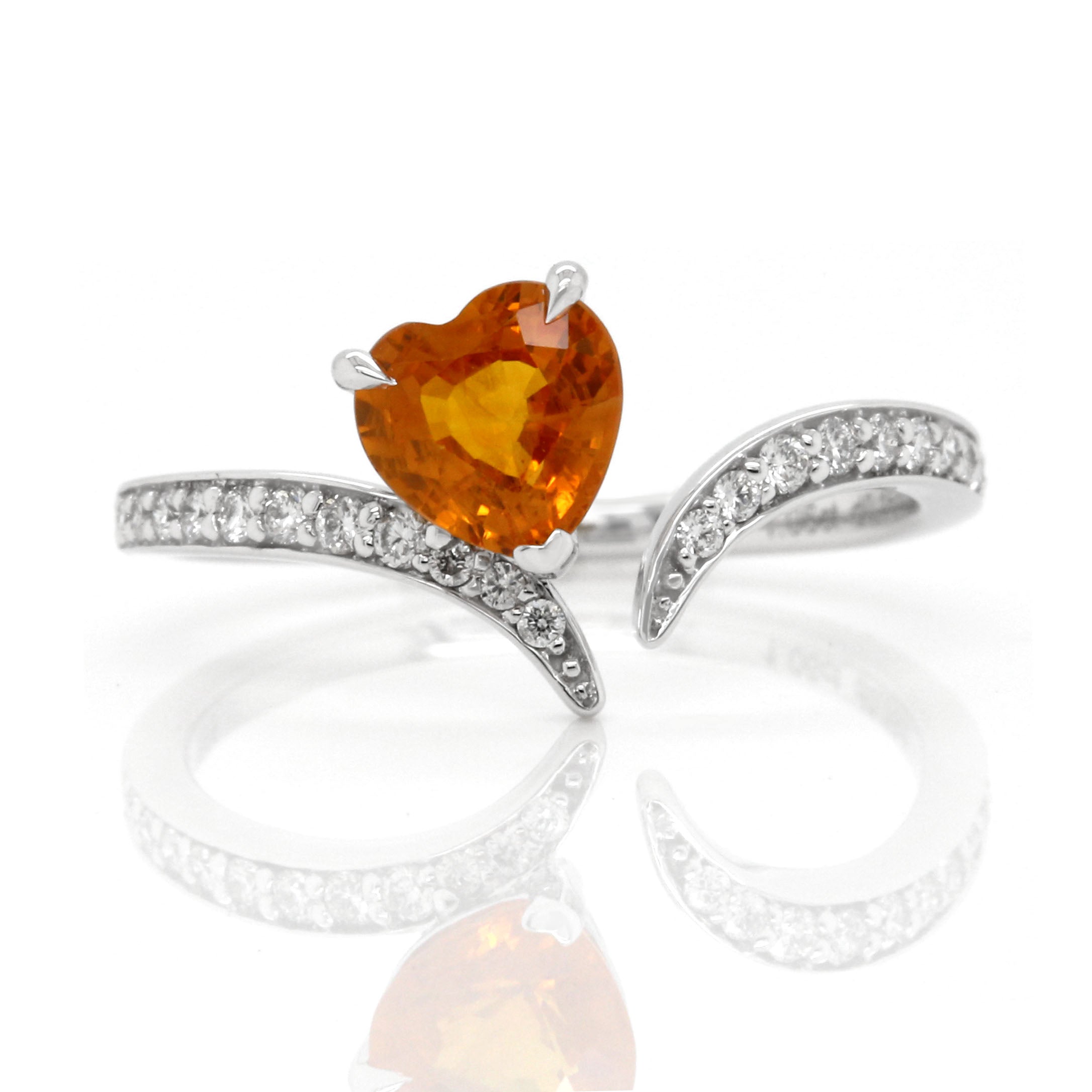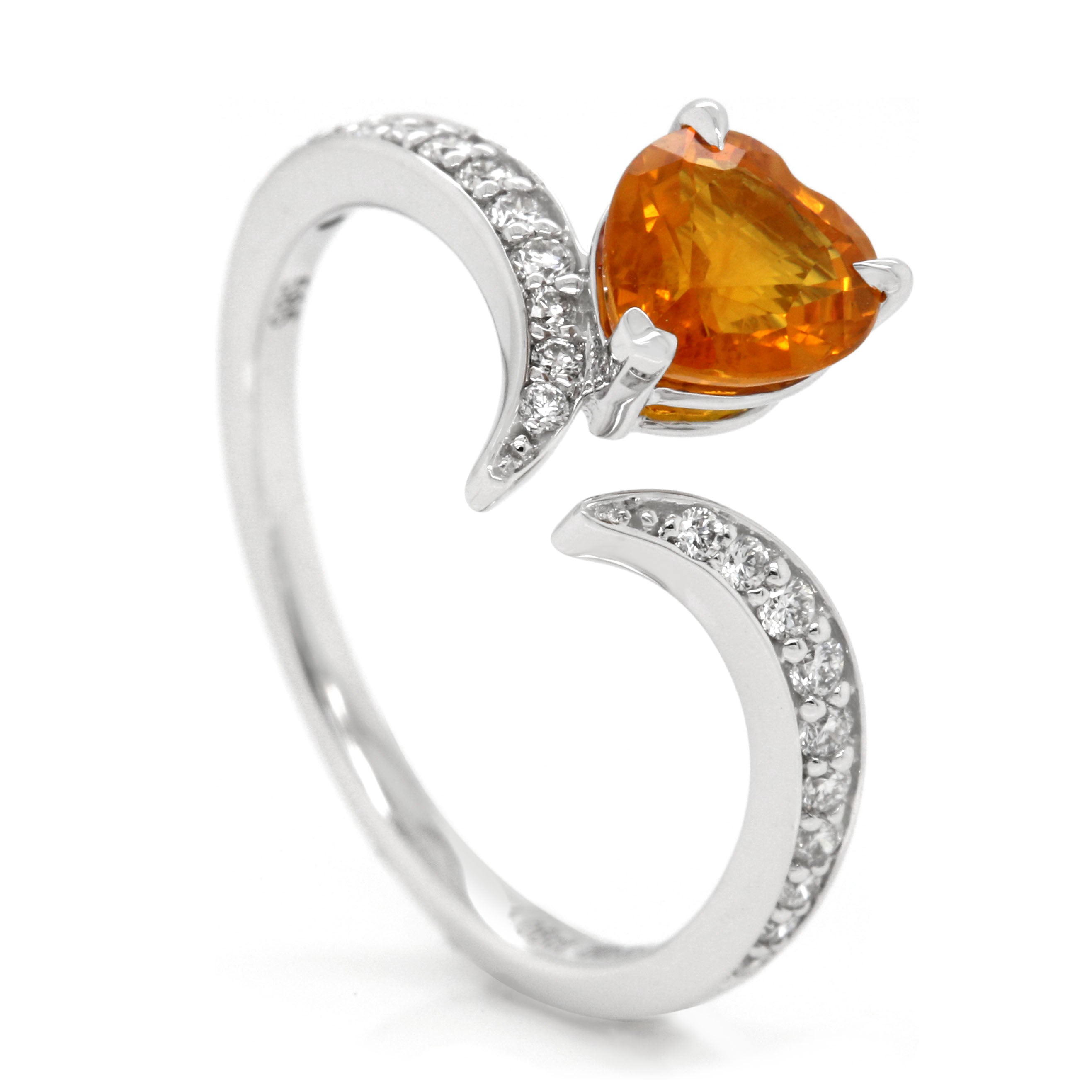 1.057ct Heart Shaped Orange Sapphire and Diamond Open Ring in 14k White Gold