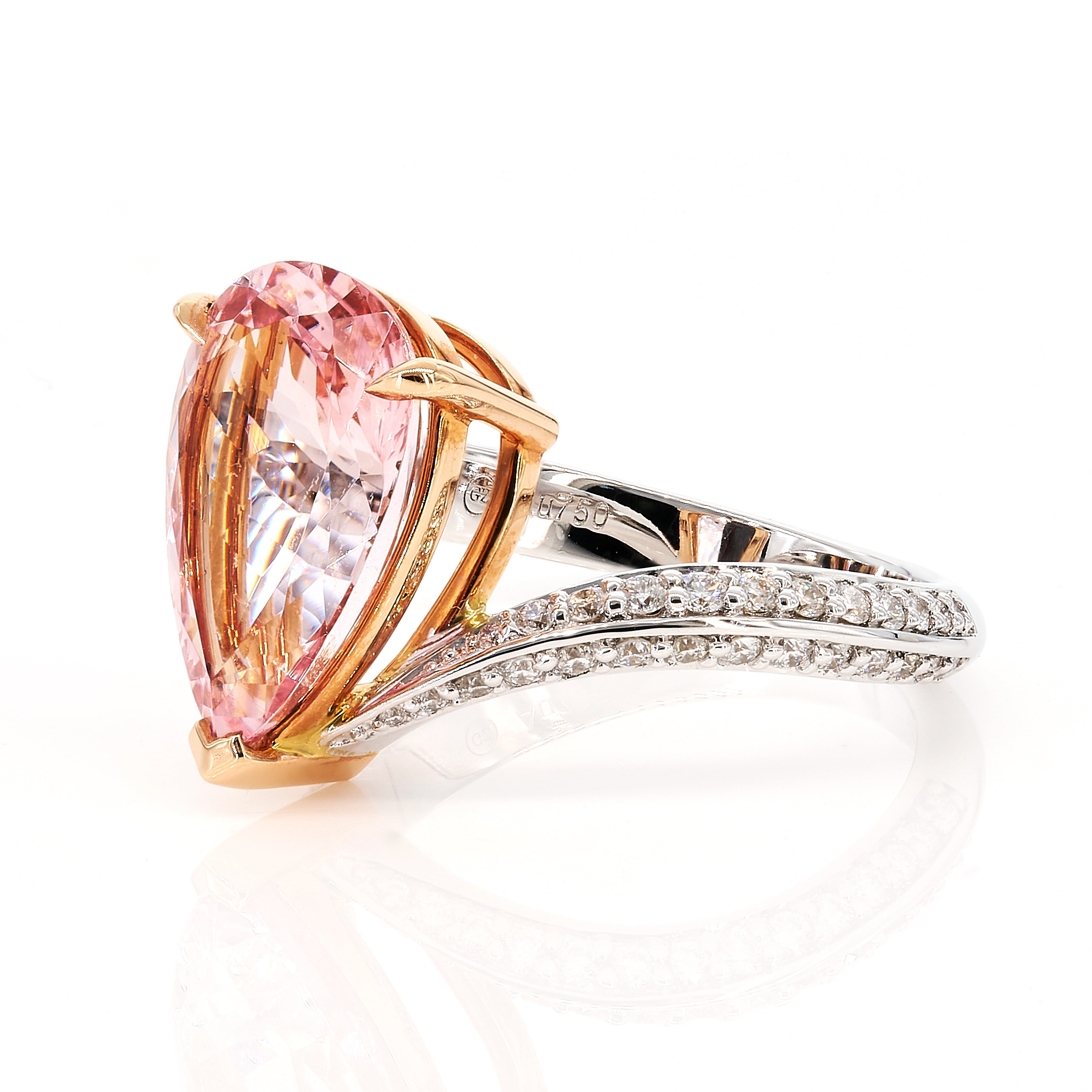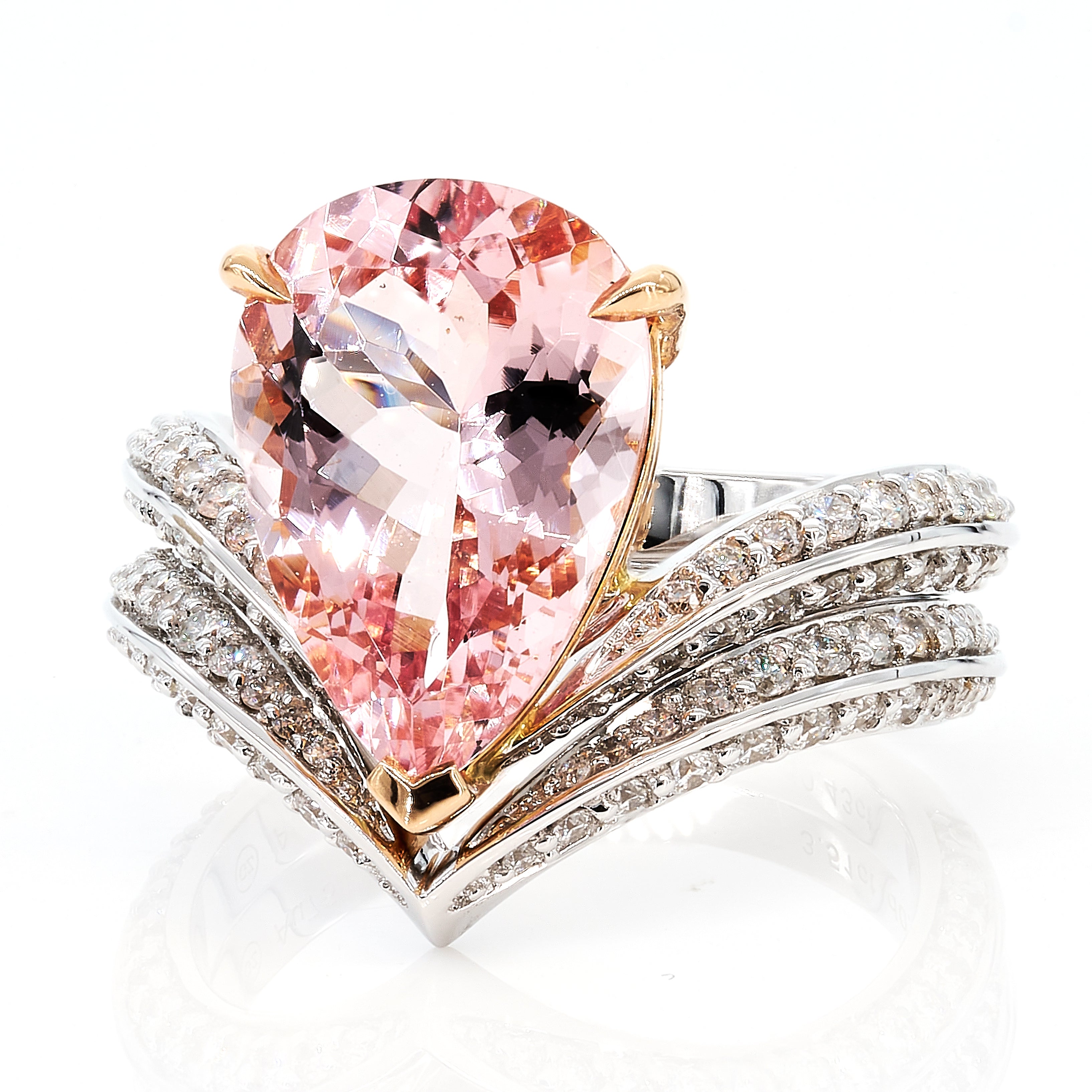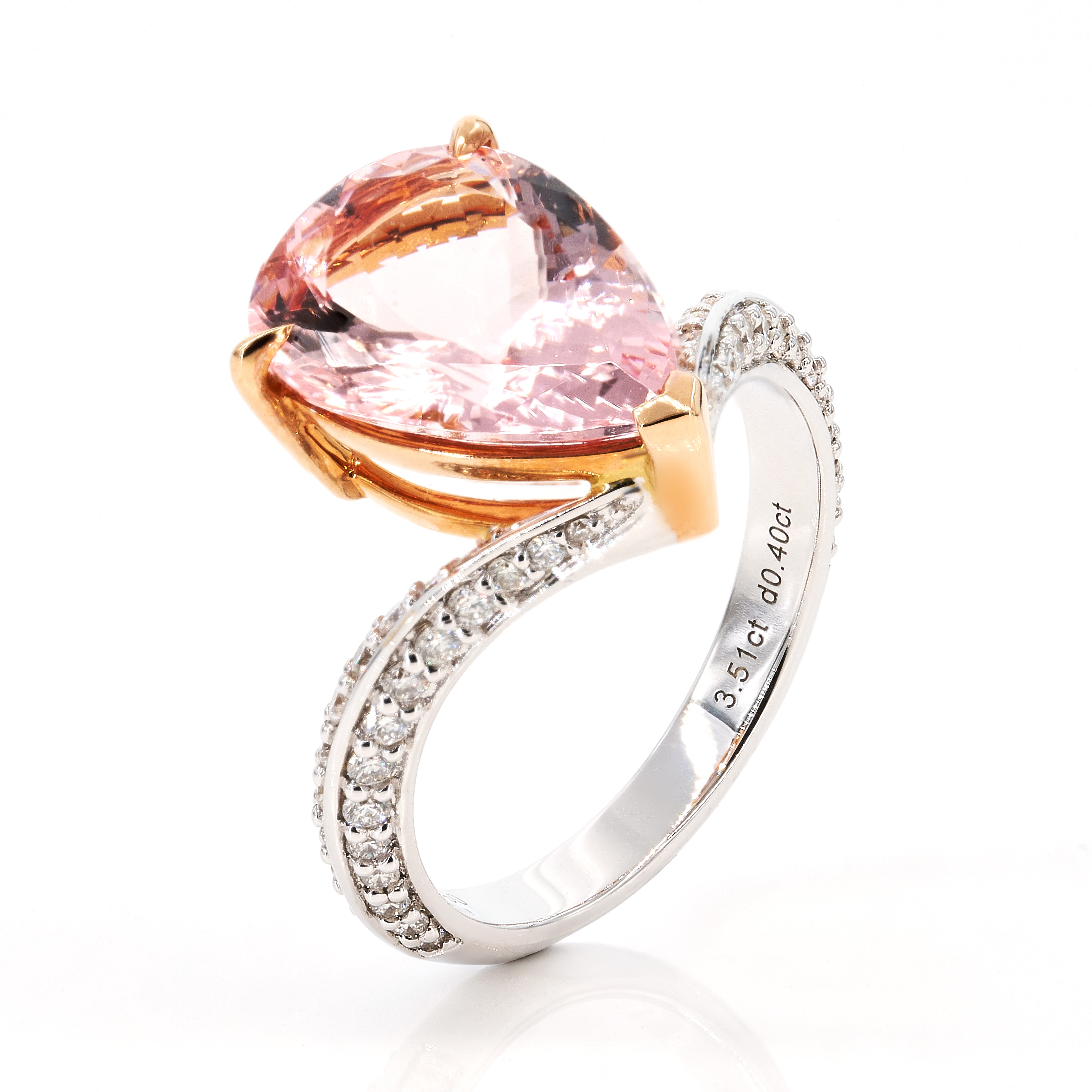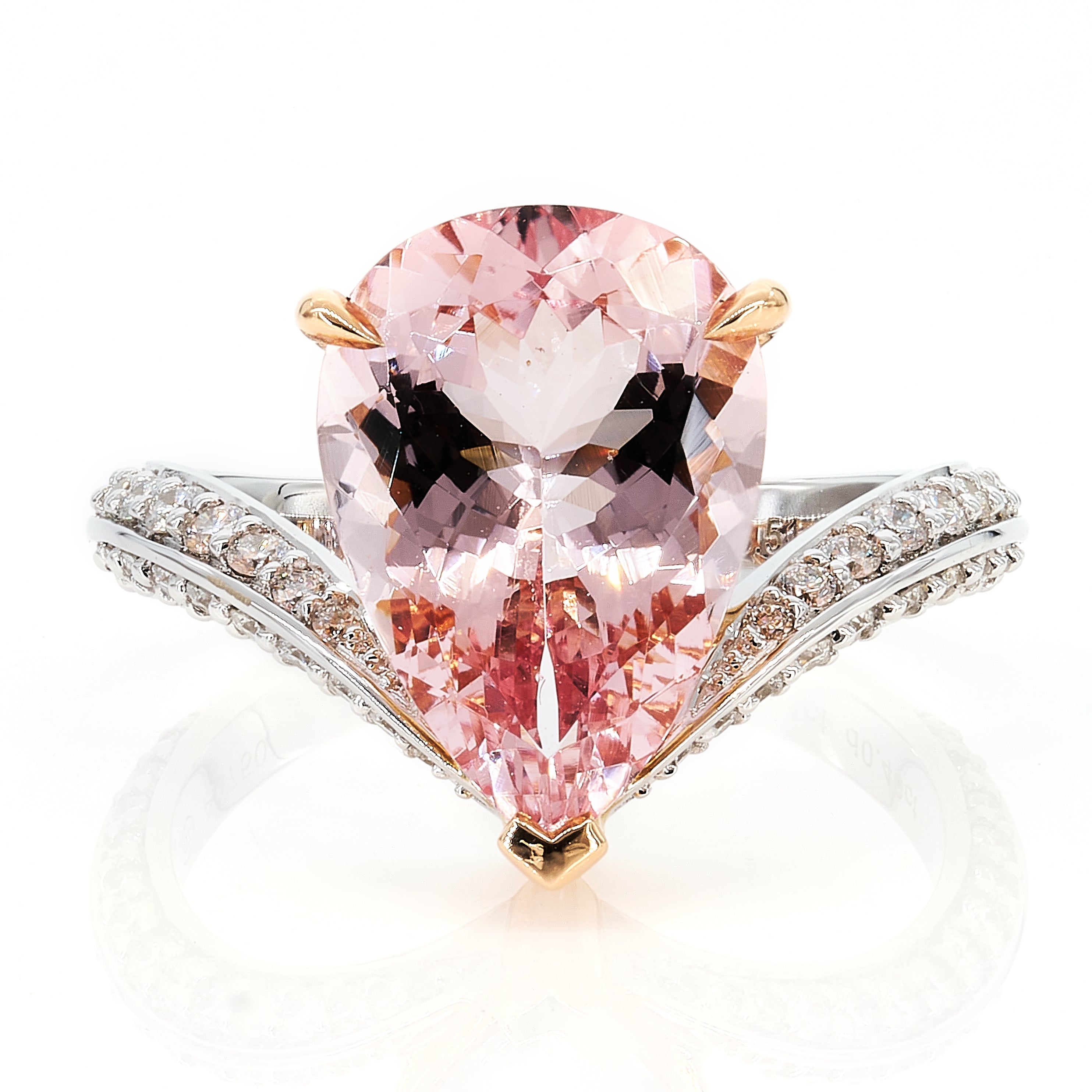 3.51ct Morganite Diamond Halo Ring 18K White Gold